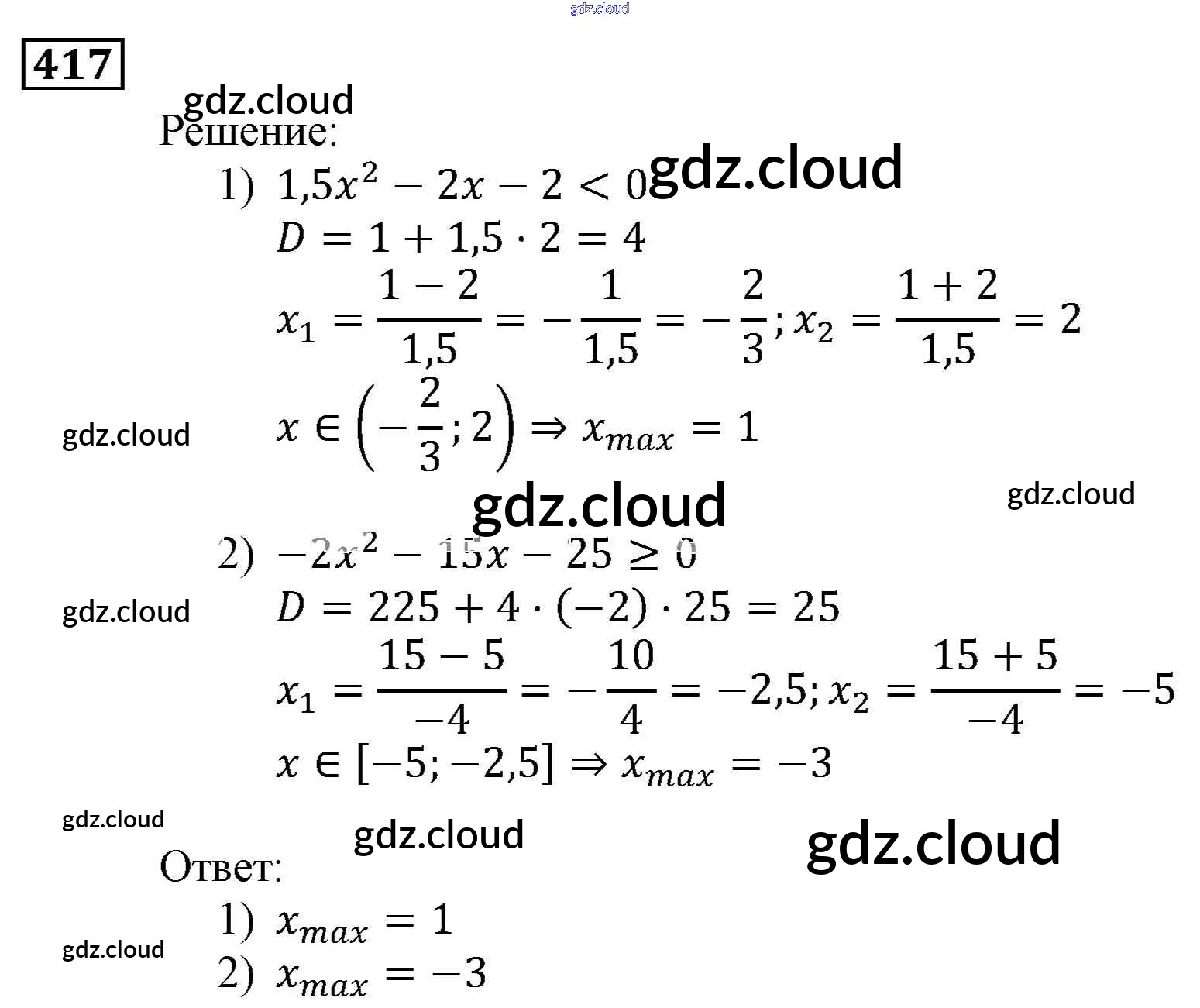 Ответ на задание 417 Учебник Алгебра за 9 (девятый) класс Мерзляк, Полонский, Якир Алгоритм успеха 2016, 2021