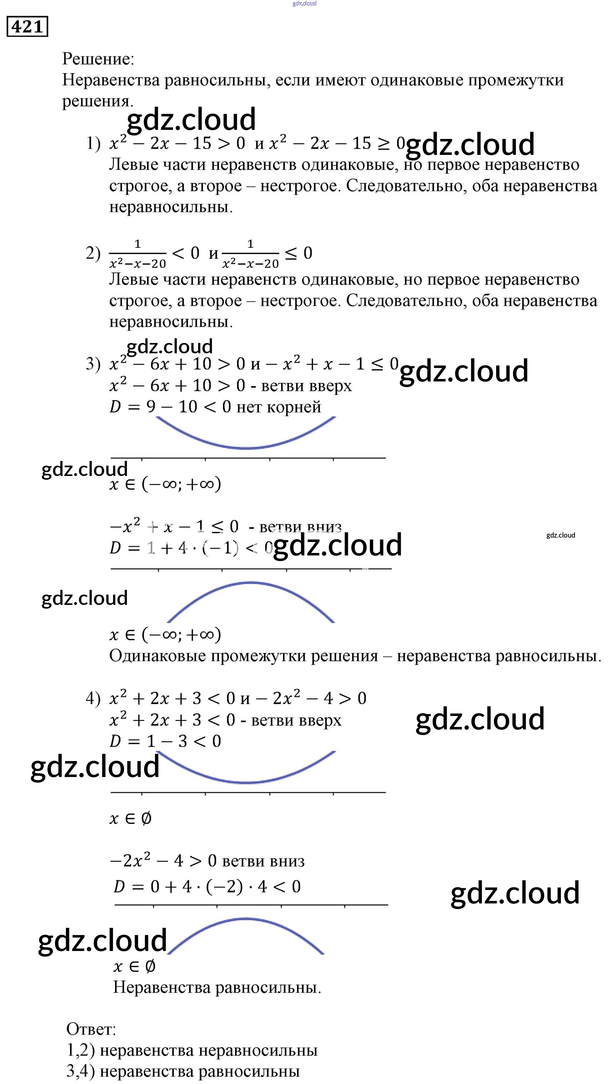 Ответ на задание 421 Учебник Алгебра за 9 (девятый) класс Мерзляк, Полонский, Якир Алгоритм успеха 2016, 2021