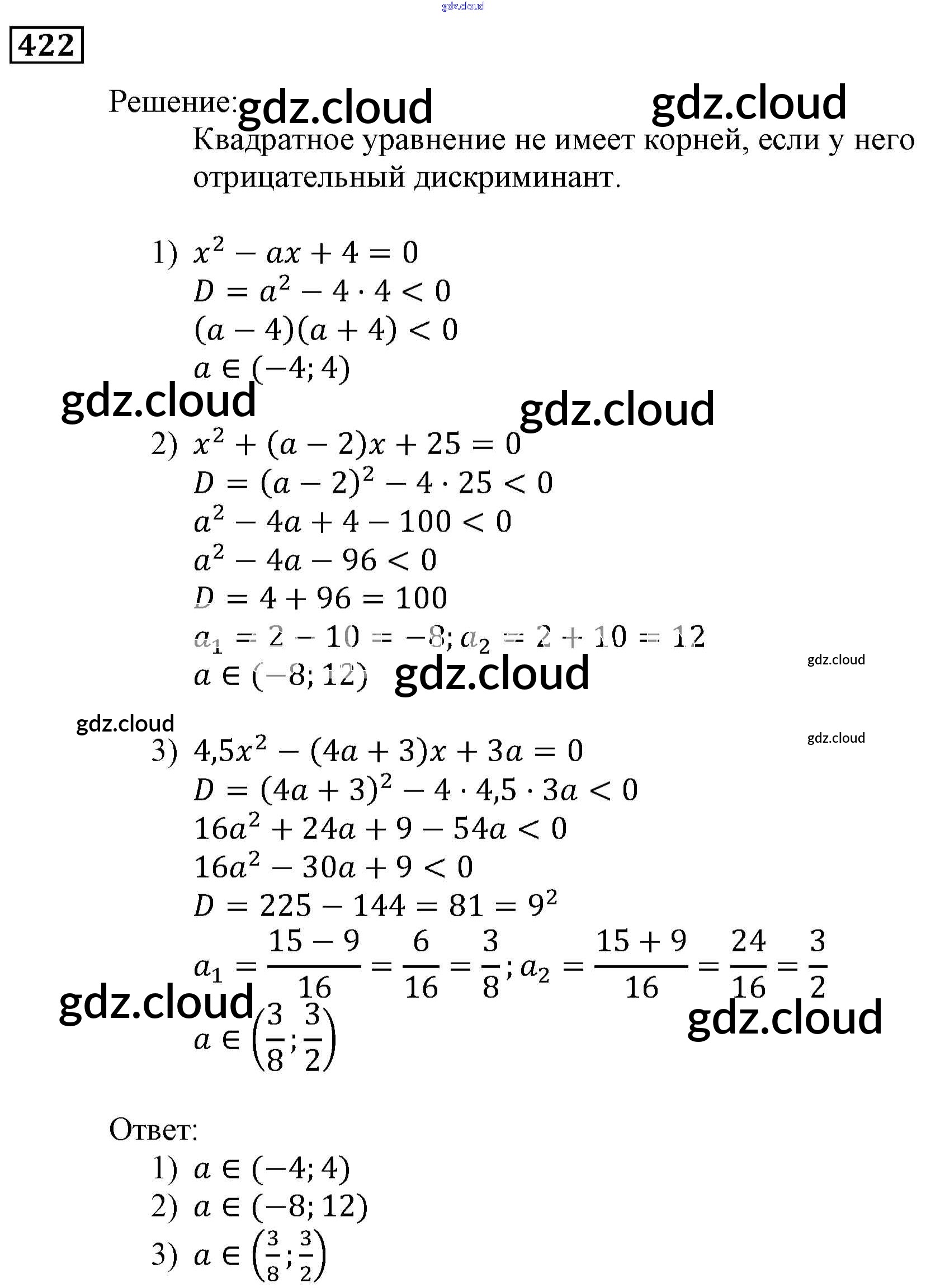 Ответ на задание 422 Учебник Алгебра за 9 (девятый) класс Мерзляк, Полонский, Якир Алгоритм успеха 2016, 2021
