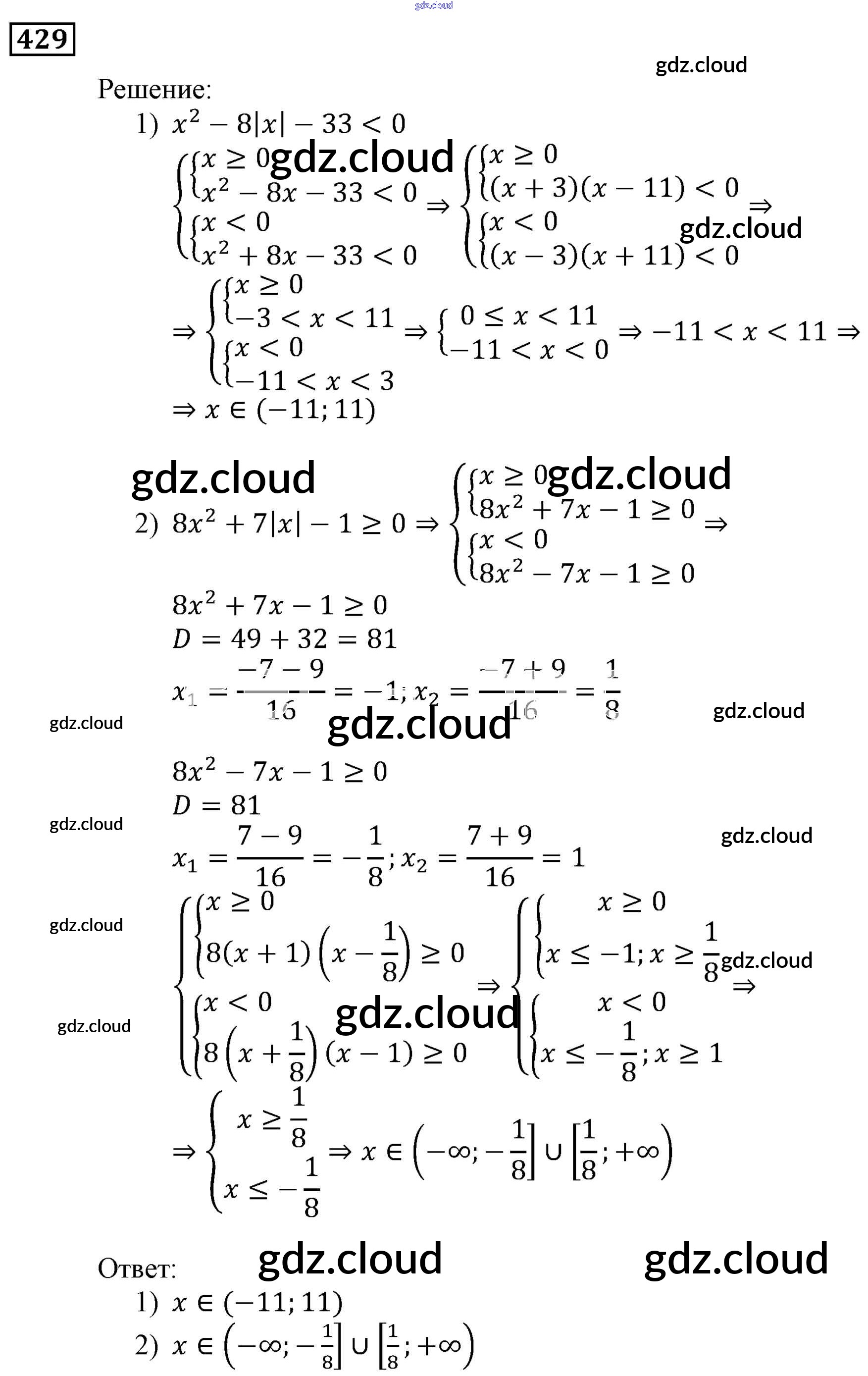 Ответ на задание 429 Учебник Алгебра за 9 (девятый) класс Мерзляк, Полонский, Якир Алгоритм успеха 2016, 2021