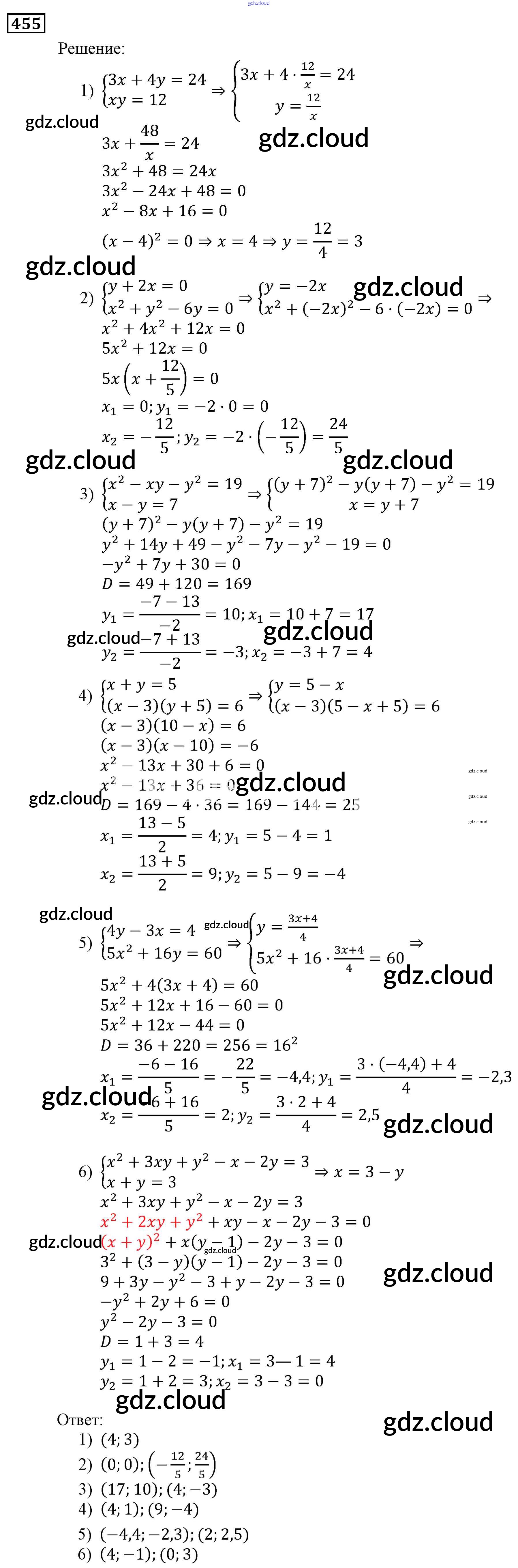 Ответ на задание 455 Учебник Алгебра за 9 (девятый) класс Мерзляк, Полонский, Якир Алгоритм успеха 2016, 2021