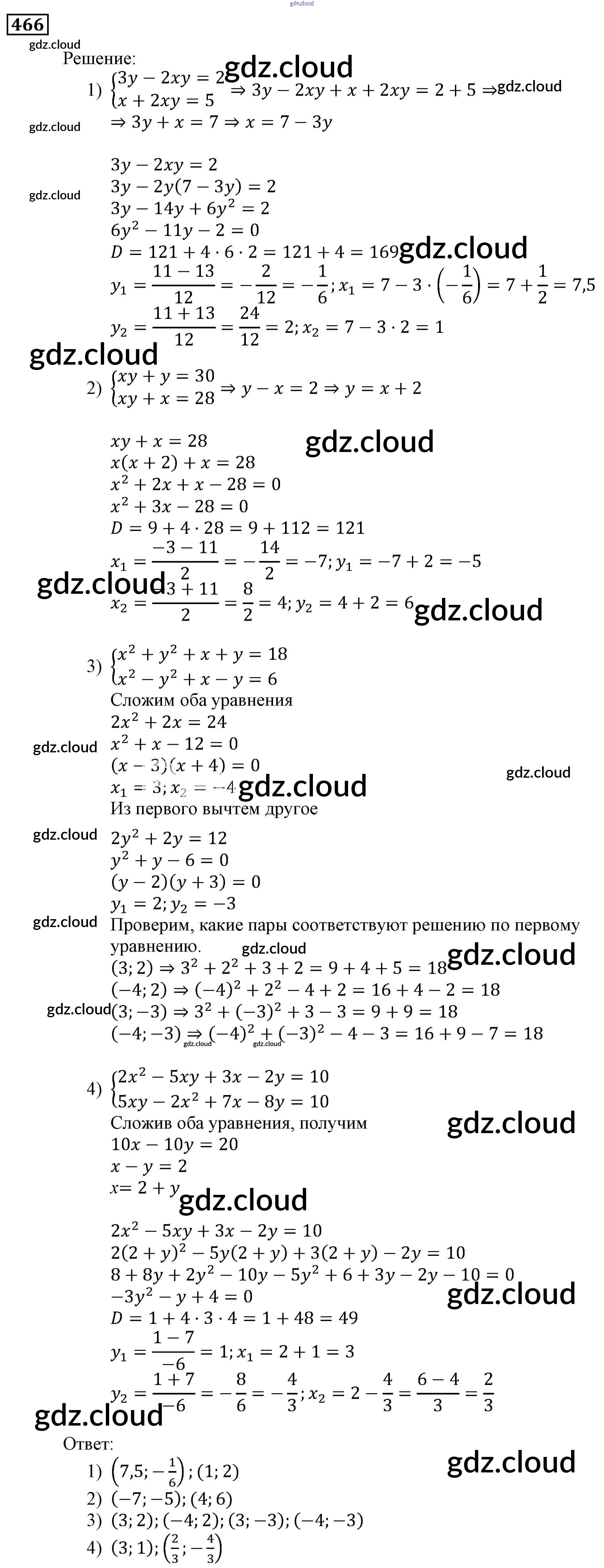 Ответ на задание 466 Учебник Алгебра за 9 (девятый) класс Мерзляк, Полонский, Якир Алгоритм успеха 2016, 2021