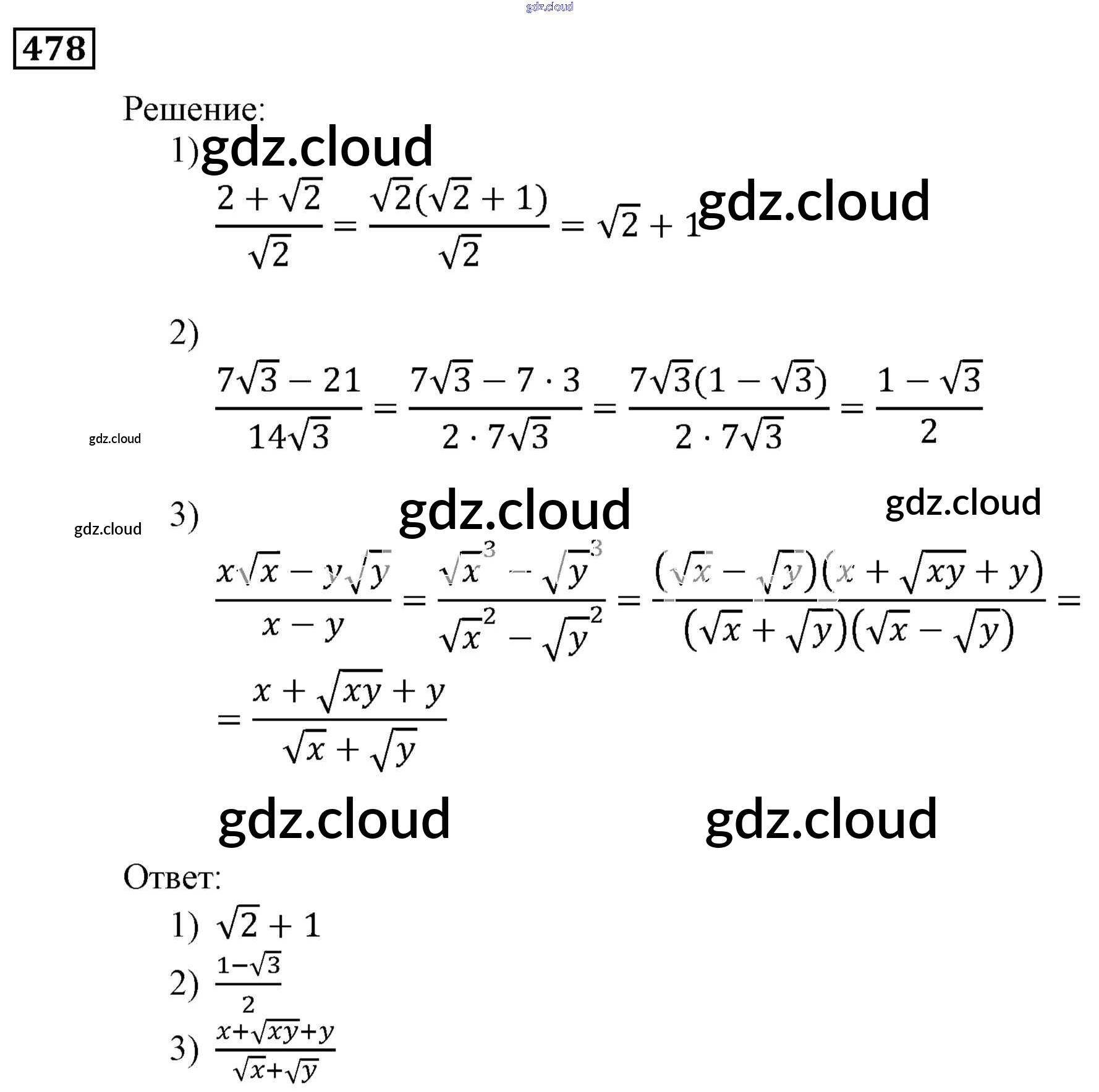 Ответ на задание 478 Учебник Алгебра за 9 (девятый) класс Мерзляк, Полонский, Якир Алгоритм успеха 2016, 2021