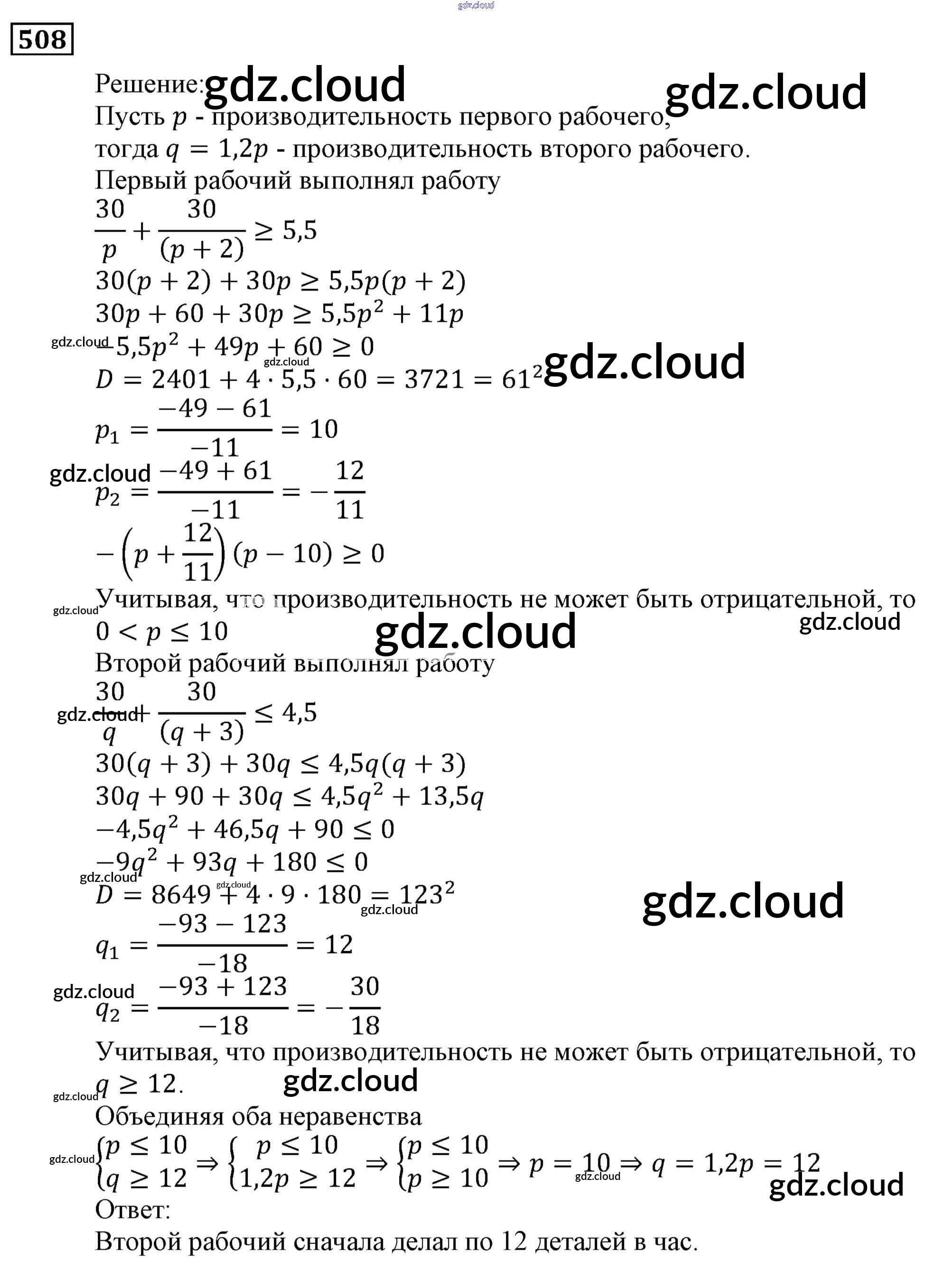 Ответ на задание 508 Учебник Алгебра за 9 (девятый) класс Мерзляк, Полонский, Якир Алгоритм успеха 2016, 2021