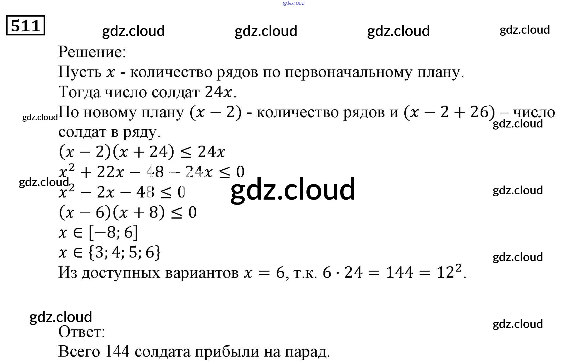 Ответ на задание 511 Учебник Алгебра за 9 (девятый) класс Мерзляк, Полонский, Якир Алгоритм успеха 2016, 2021