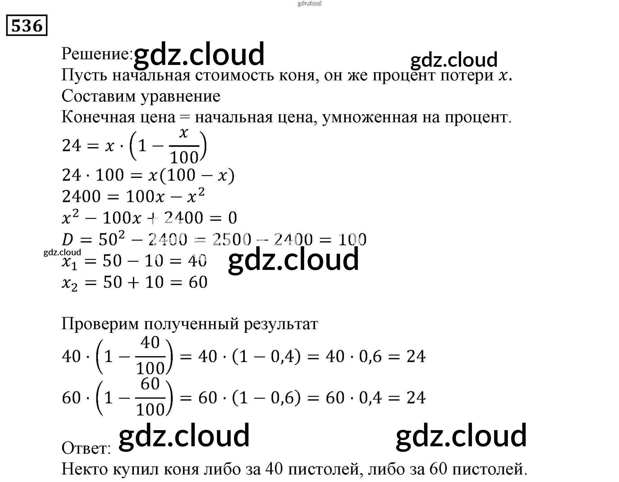 Ответ на задание 536 Учебник Алгебра за 9 (девятый) класс Мерзляк, Полонский, Якир Алгоритм успеха 2016, 2021