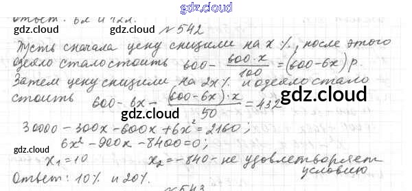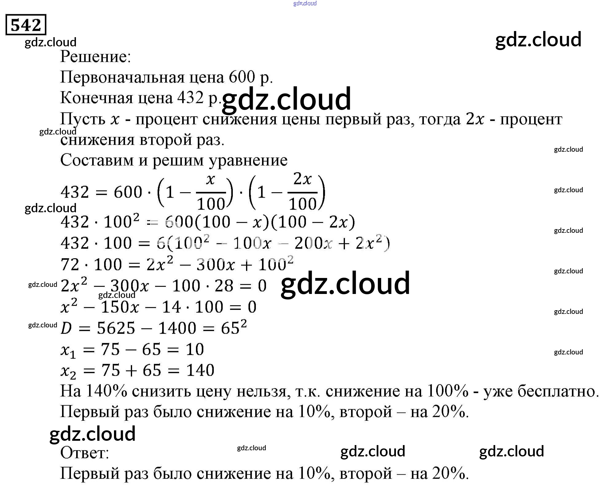 Ответ на задание 542 Учебник Алгебра за 9 (девятый) класс Мерзляк, Полонский, Якир Алгоритм успеха 2016, 2021