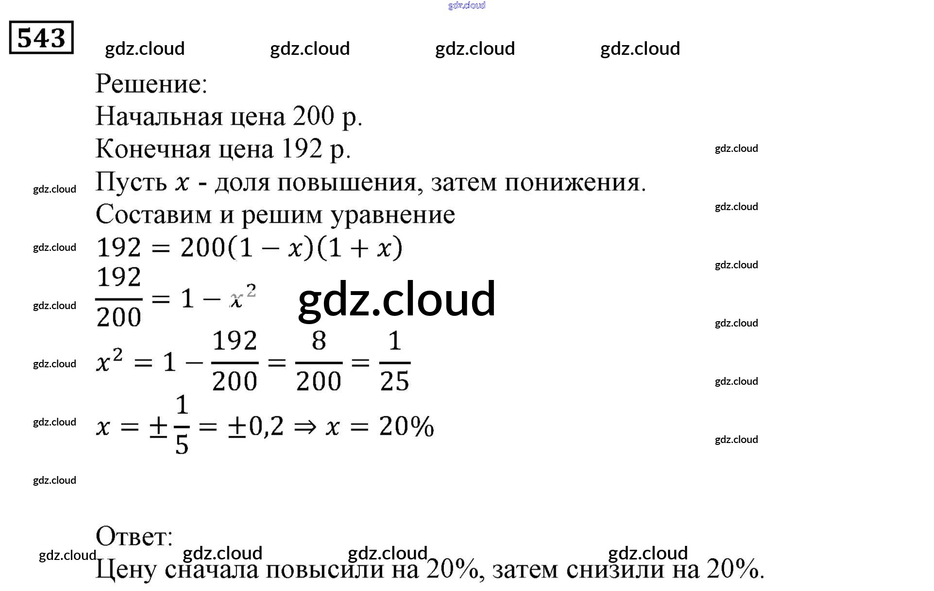 Ответ на задание 543 Учебник Алгебра за 9 (девятый) класс Мерзляк, Полонский, Якир Алгоритм успеха 2016, 2021
