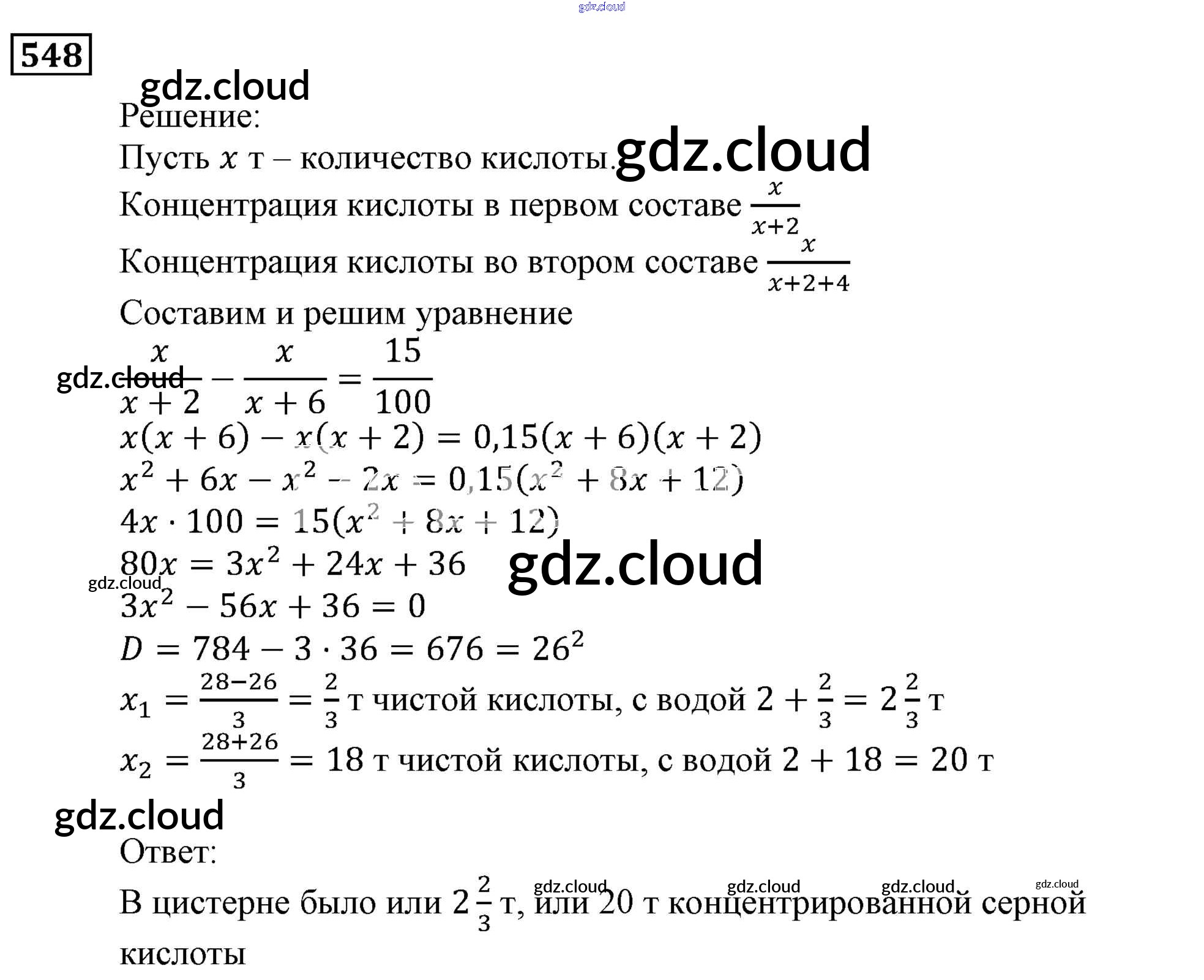 Ответ на задание 548 Учебник Алгебра за 9 (девятый) класс Мерзляк, Полонский, Якир Алгоритм успеха 2016, 2021