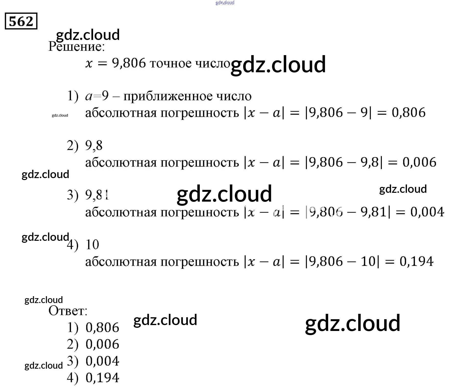 Ответ на задание 562 Учебник Алгебра за 9 (девятый) класс Мерзляк, Полонский, Якир Алгоритм успеха 2016, 2021