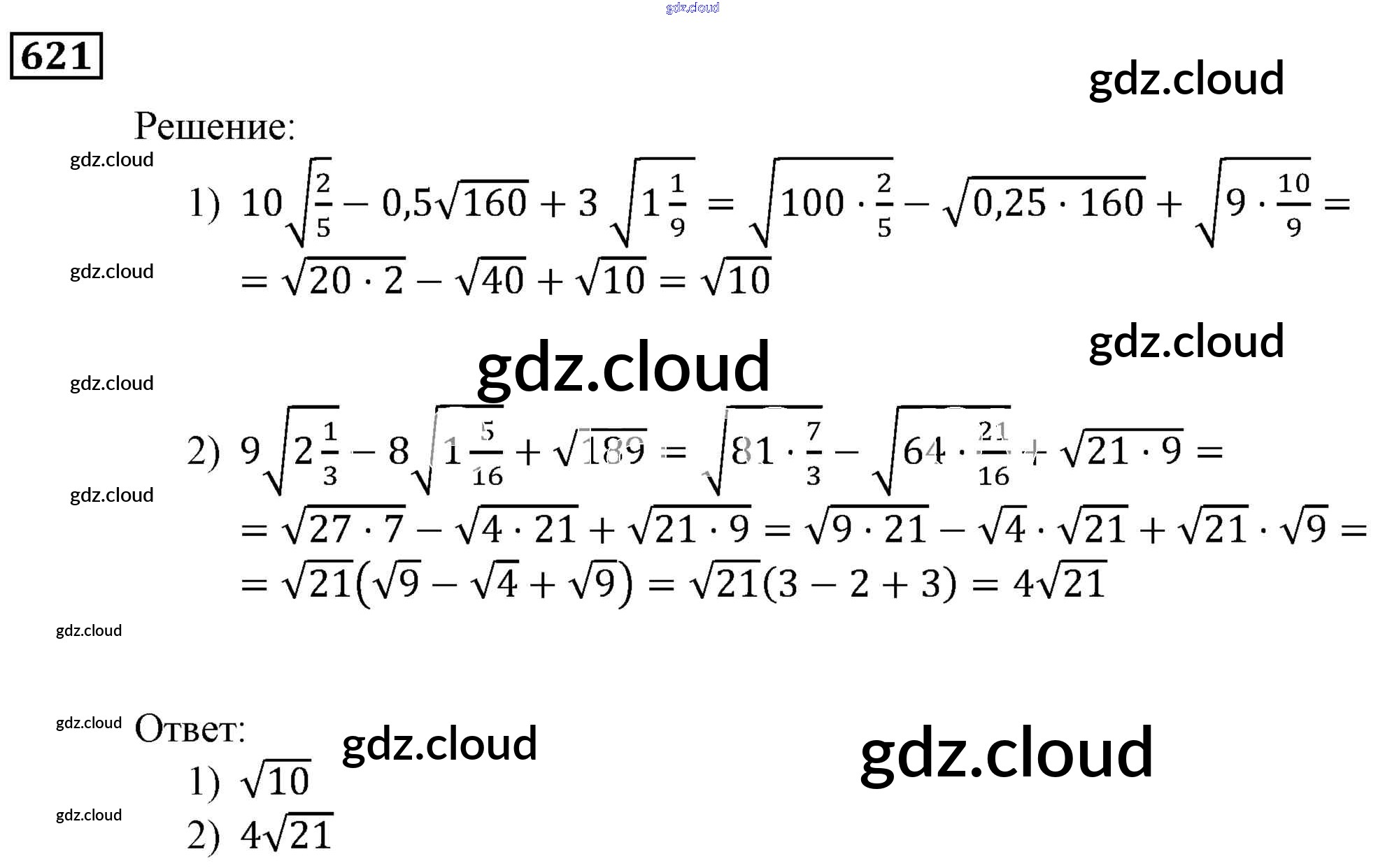 Ответ на задание 621 Учебник Алгебра за 9 (девятый) класс Мерзляк, Полонский, Якир Алгоритм успеха 2016, 2021