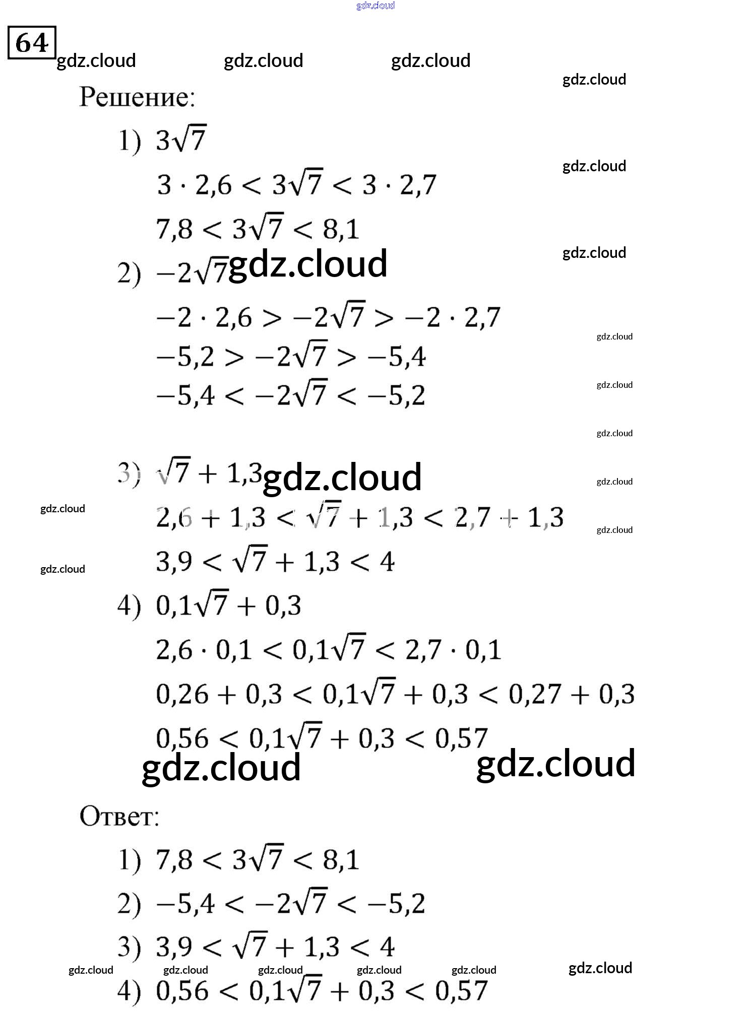 Ответ на задание 64 Учебник Алгебра за 9 (девятый) класс Мерзляк, Полонский, Якир Алгоритм успеха 2016, 2021
