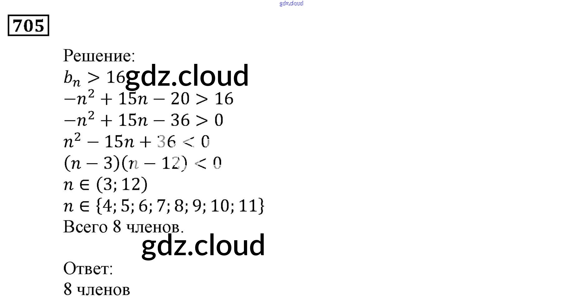 Ответ на задание 705 Учебник Алгебра за 9 (девятый) класс Мерзляк, Полонский, Якир Алгоритм успеха 2016, 2021