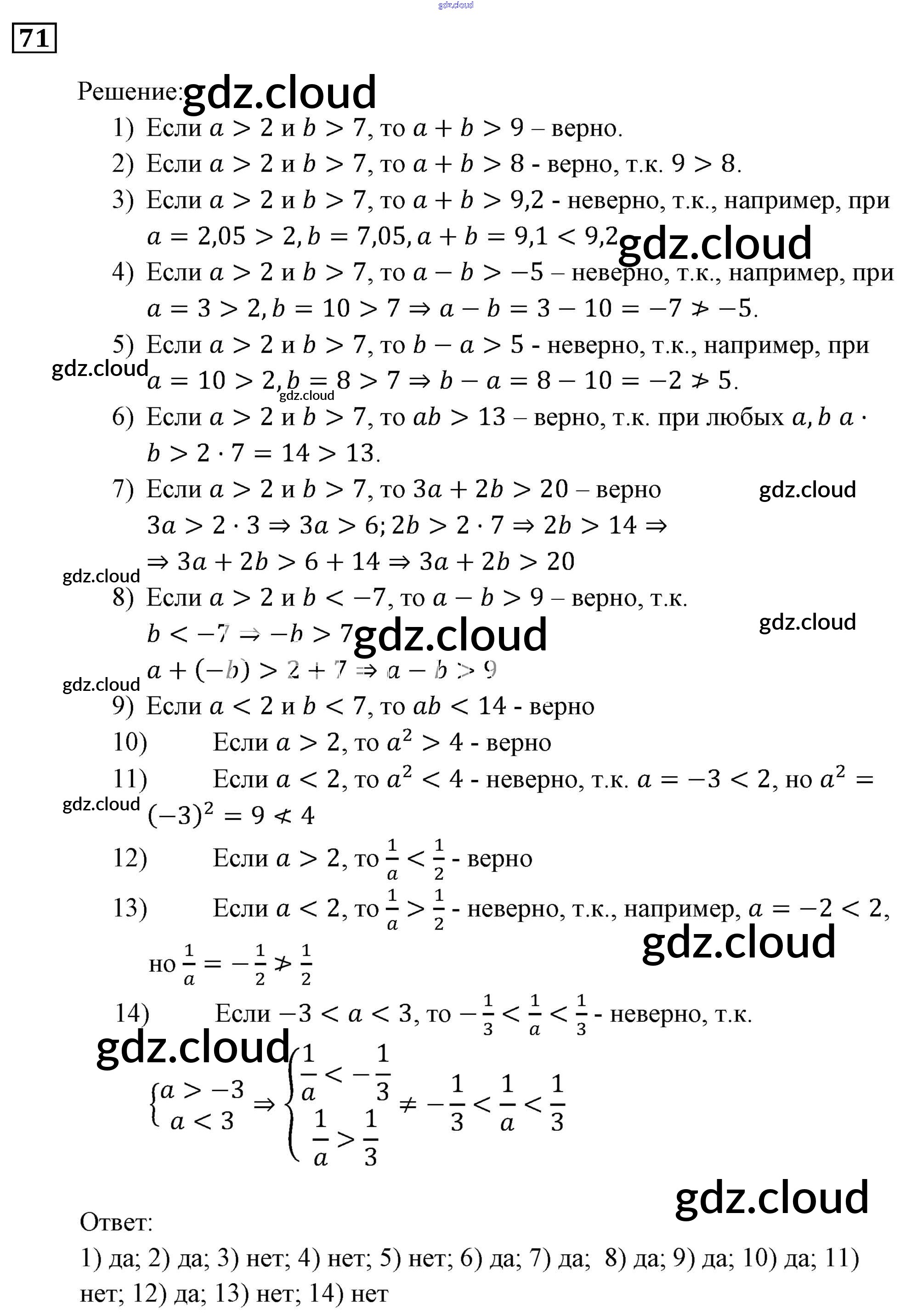 Ответ на задание 71 Учебник Алгебра за 9 (девятый) класс Мерзляк, Полонский, Якир Алгоритм успеха 2016, 2021