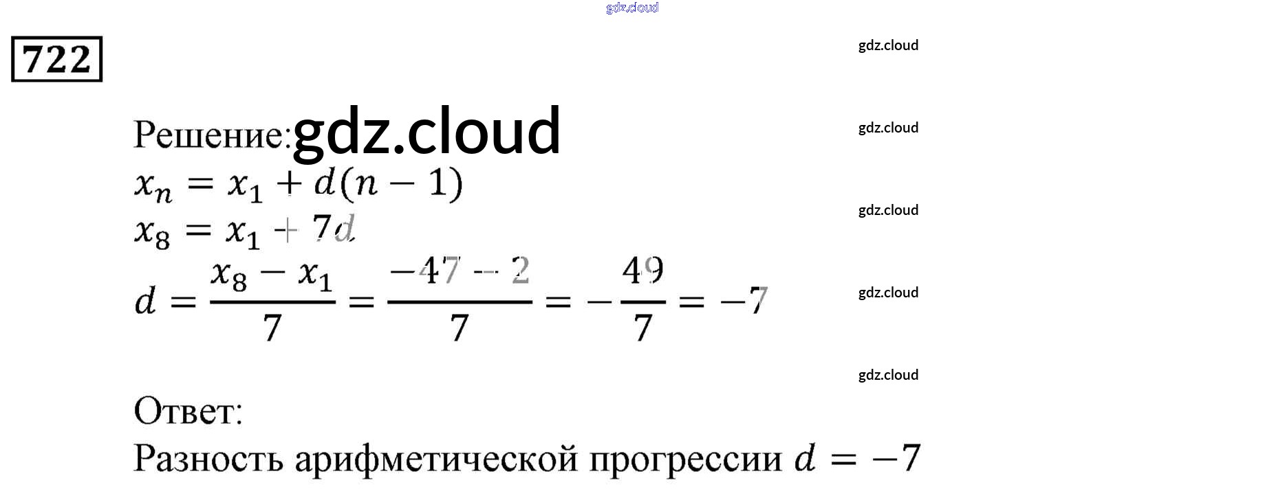 Ответ на задание 722 Учебник Алгебра за 9 (девятый) класс Мерзляк, Полонский, Якир Алгоритм успеха 2016, 2021