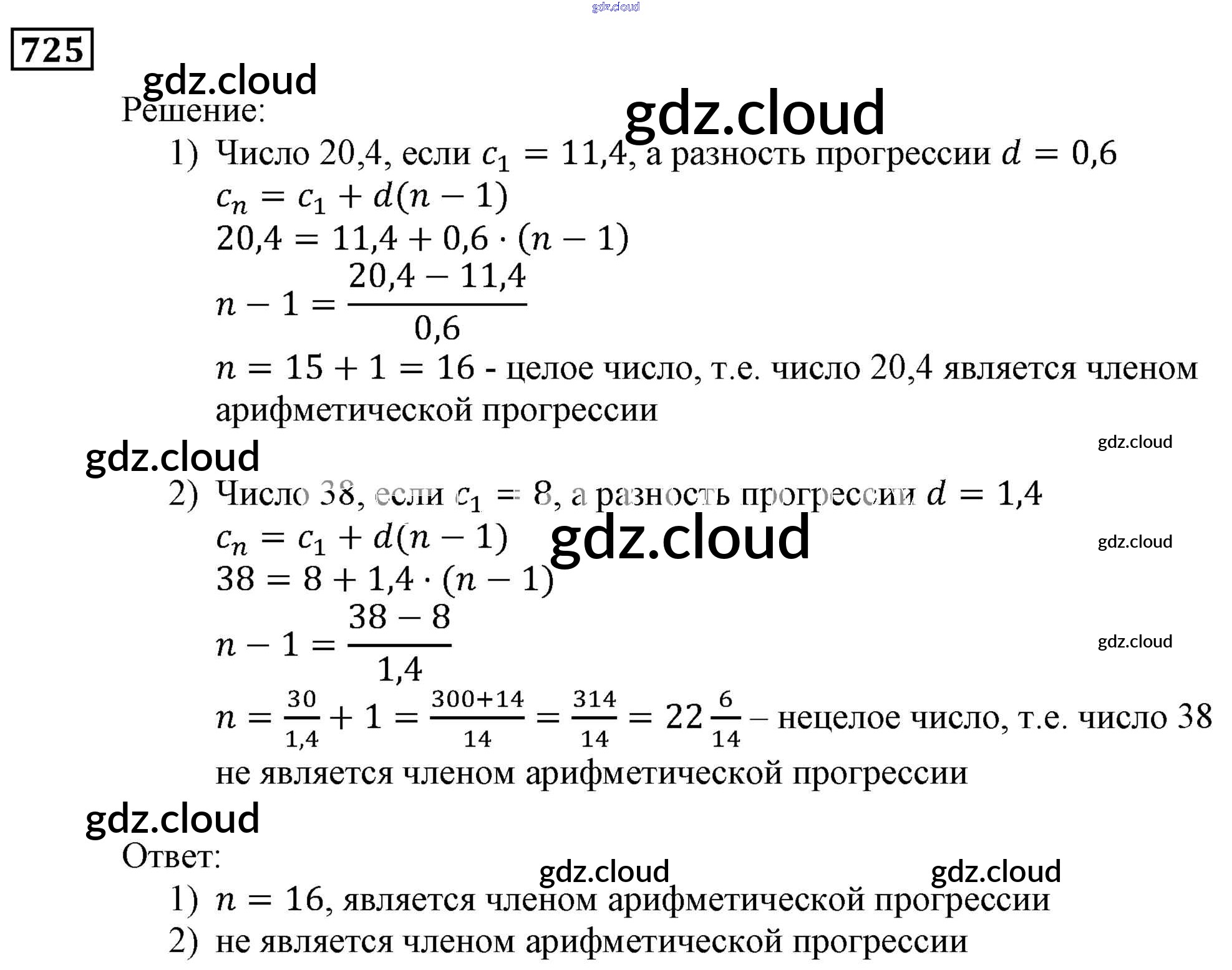 Ответ на задание 725 Учебник Алгебра за 9 (девятый) класс Мерзляк, Полонский, Якир Алгоритм успеха 2016, 2021
