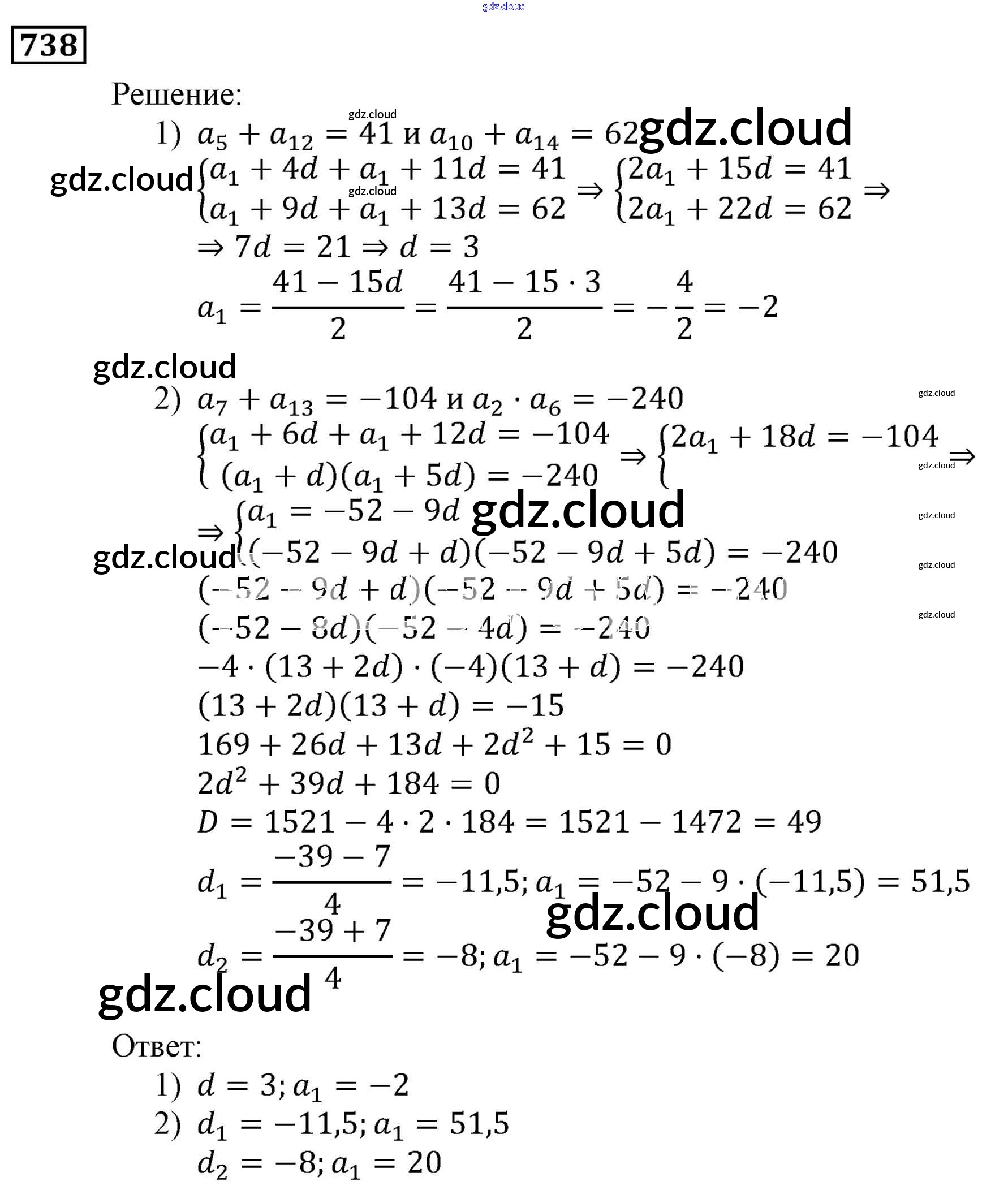 Ответ на задание 738 Учебник Алгебра за 9 (девятый) класс Мерзляк, Полонский, Якир Алгоритм успеха 2016, 2021