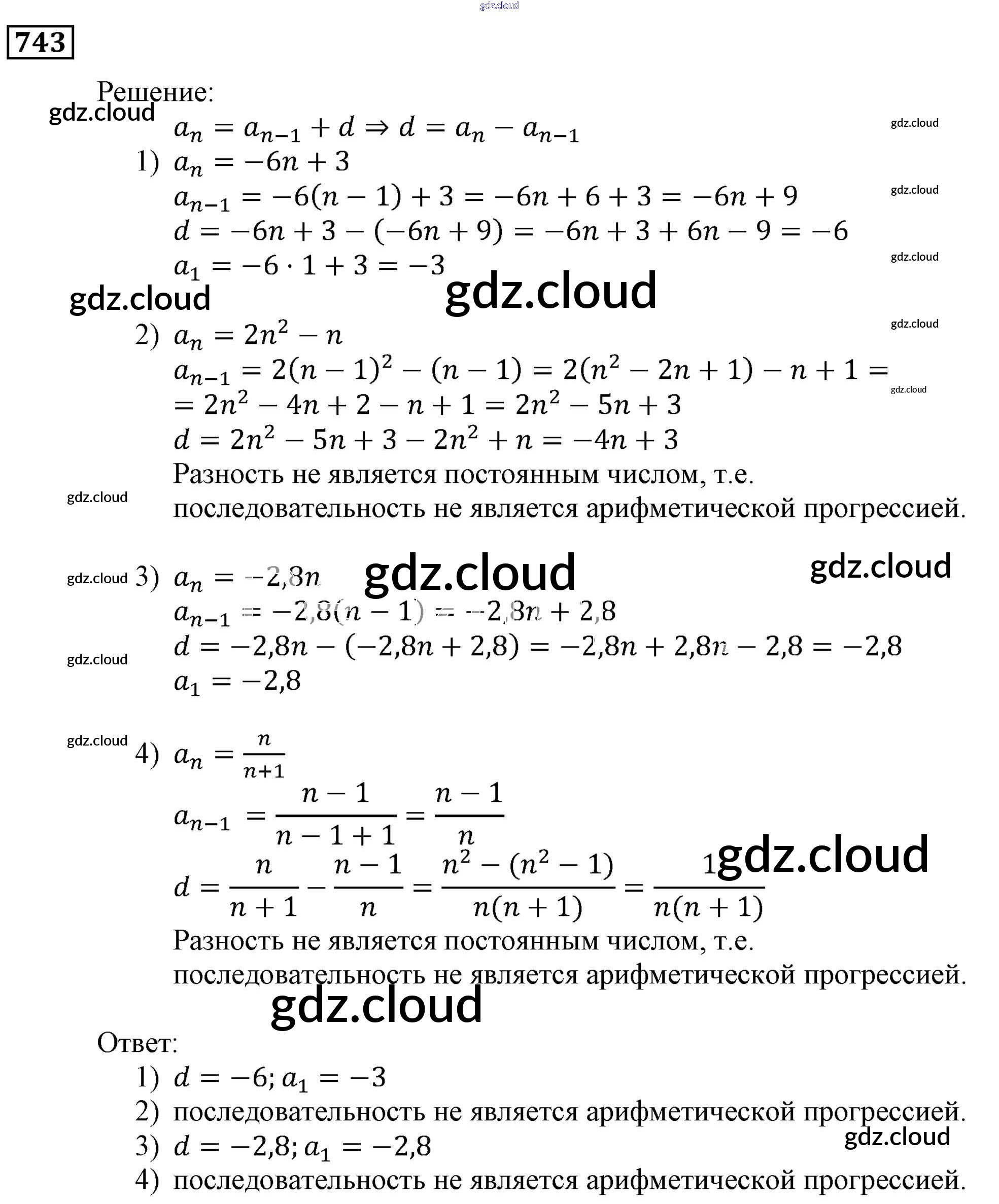 Ответ на задание 743 Учебник Алгебра за 9 (девятый) класс Мерзляк, Полонский, Якир Алгоритм успеха 2016, 2021
