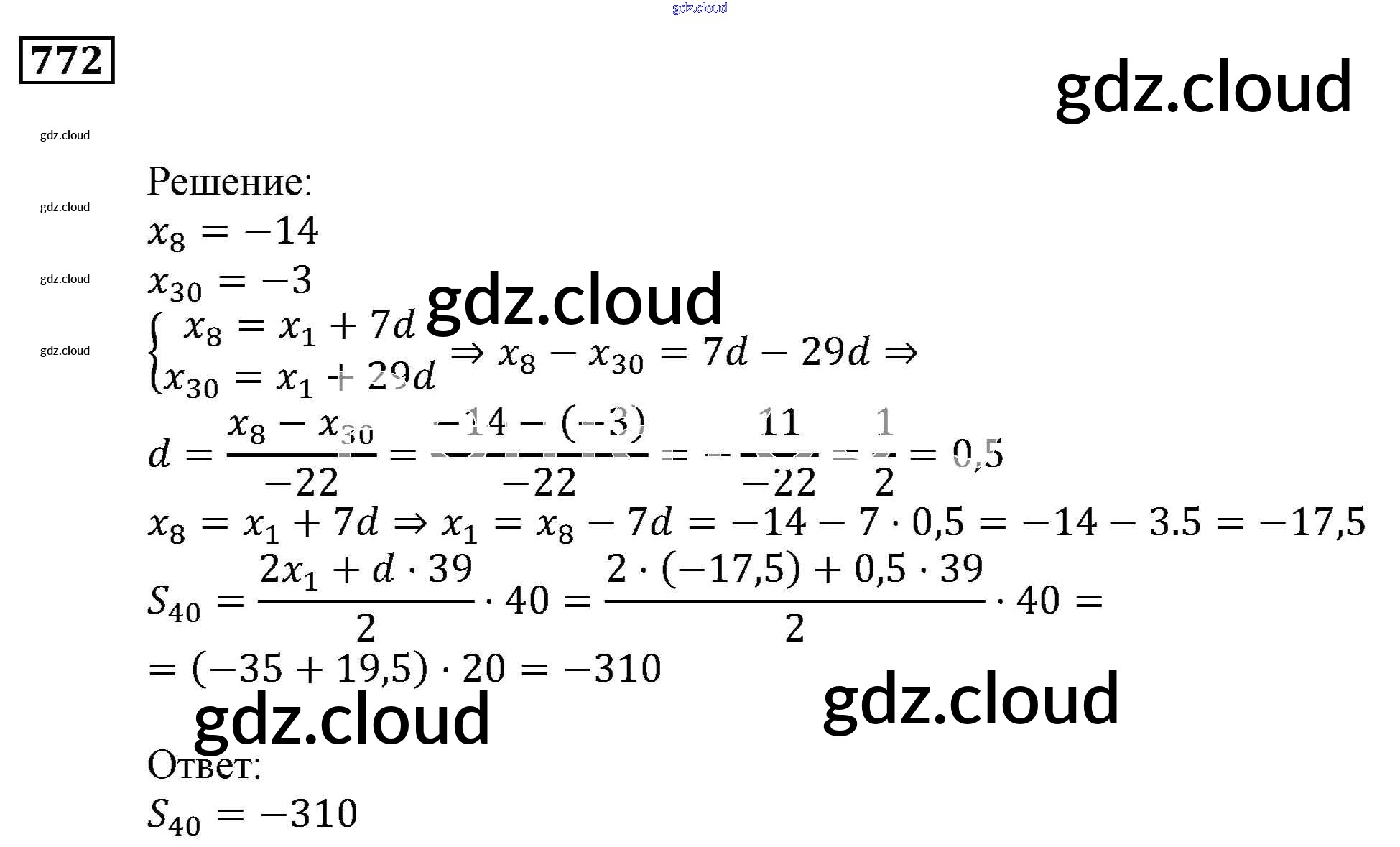 Ответ на задание 772 Учебник Алгебра за 9 (девятый) класс Мерзляк, Полонский, Якир Алгоритм успеха 2016, 2021