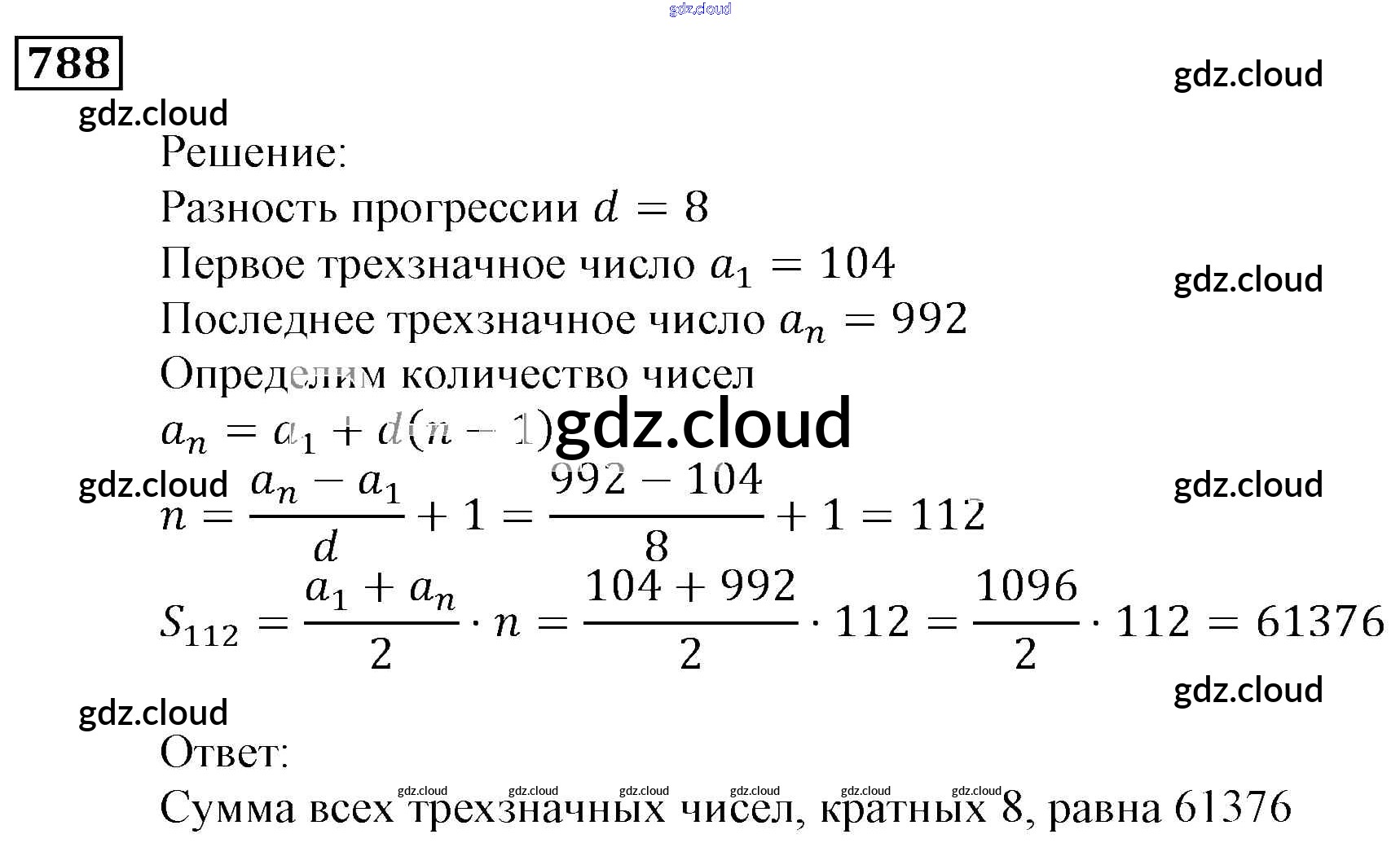 Ответ на задание 788 Учебник Алгебра за 9 (девятый) класс Мерзляк, Полонский, Якир Алгоритм успеха 2016, 2021