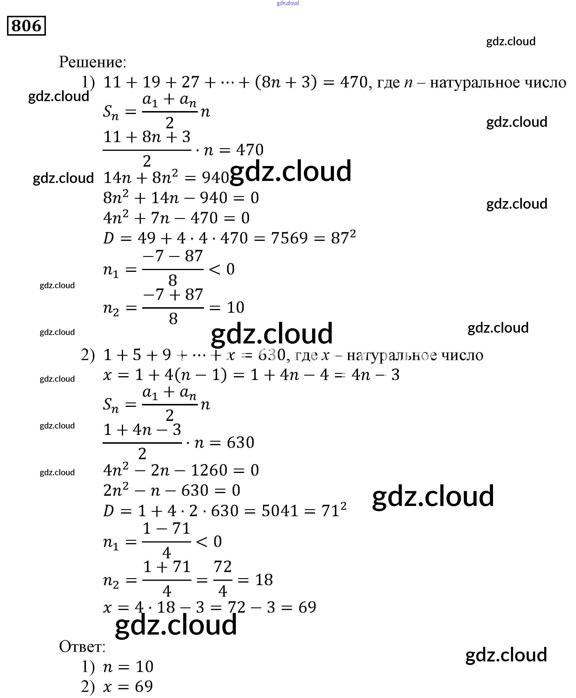 Ответ на задание 806 Учебник Алгебра за 9 (девятый) класс Мерзляк, Полонский, Якир Алгоритм успеха 2016, 2021