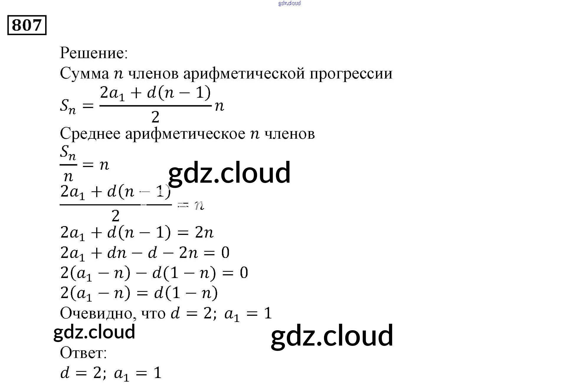 Ответ на задание 807 Учебник Алгебра за 9 (девятый) класс Мерзляк, Полонский, Якир Алгоритм успеха 2016, 2021
