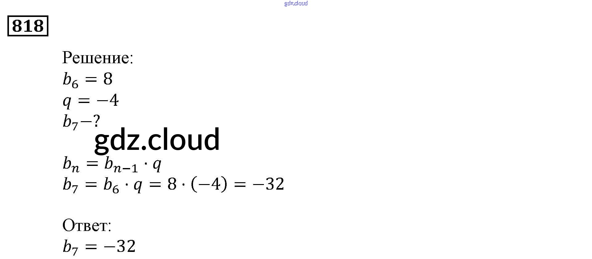 Ответ на задание 818 Учебник Алгебра за 9 (девятый) класс Мерзляк, Полонский, Якир Алгоритм успеха 2016, 2021