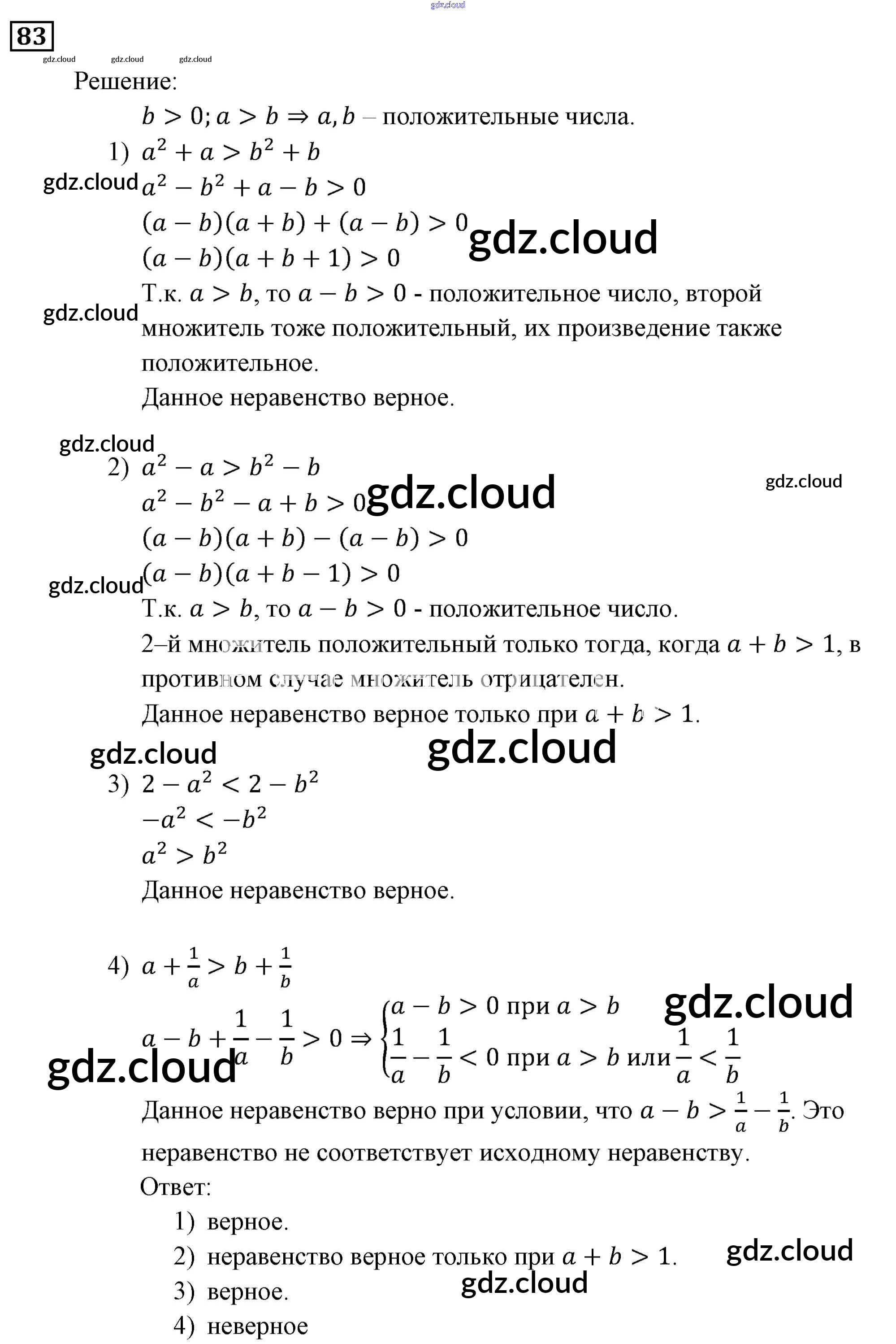 Ответ на задание 83 Учебник Алгебра за 9 (девятый) класс Мерзляк, Полонский, Якир Алгоритм успеха 2016, 2021