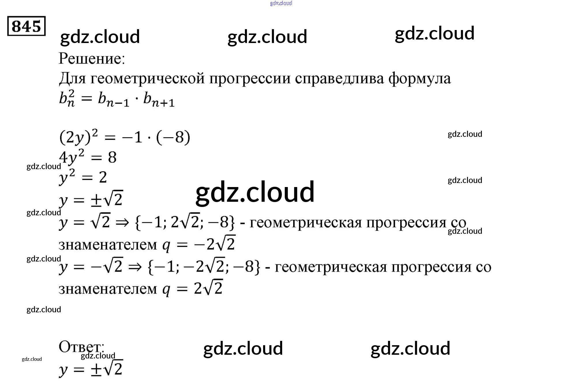 Ответ на задание 845 Учебник Алгебра за 9 (девятый) класс Мерзляк, Полонский, Якир Алгоритм успеха 2016, 2021