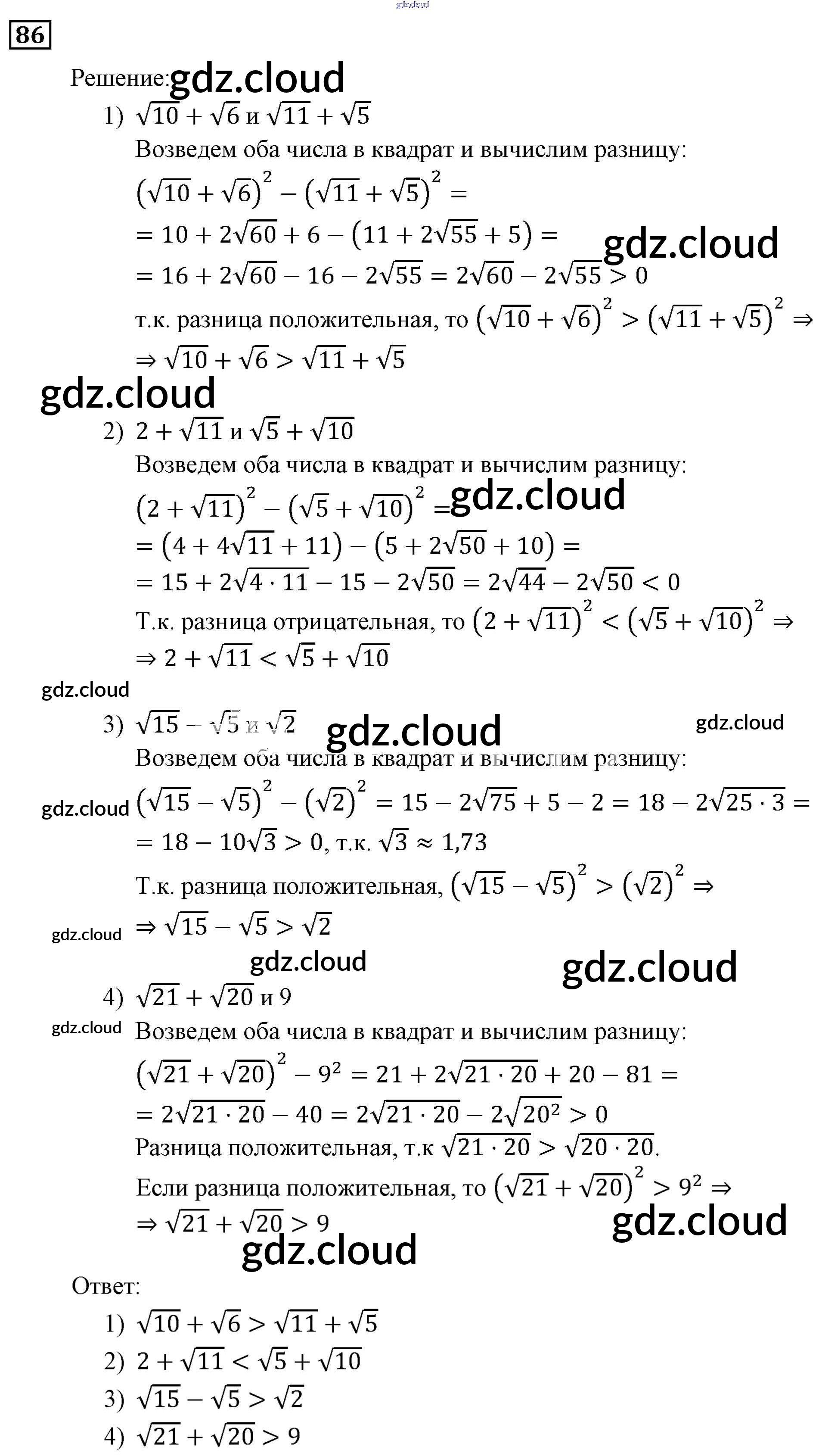 Ответ на задание 86 Учебник Алгебра за 9 (девятый) класс Мерзляк, Полонский, Якир Алгоритм успеха 2016, 2021