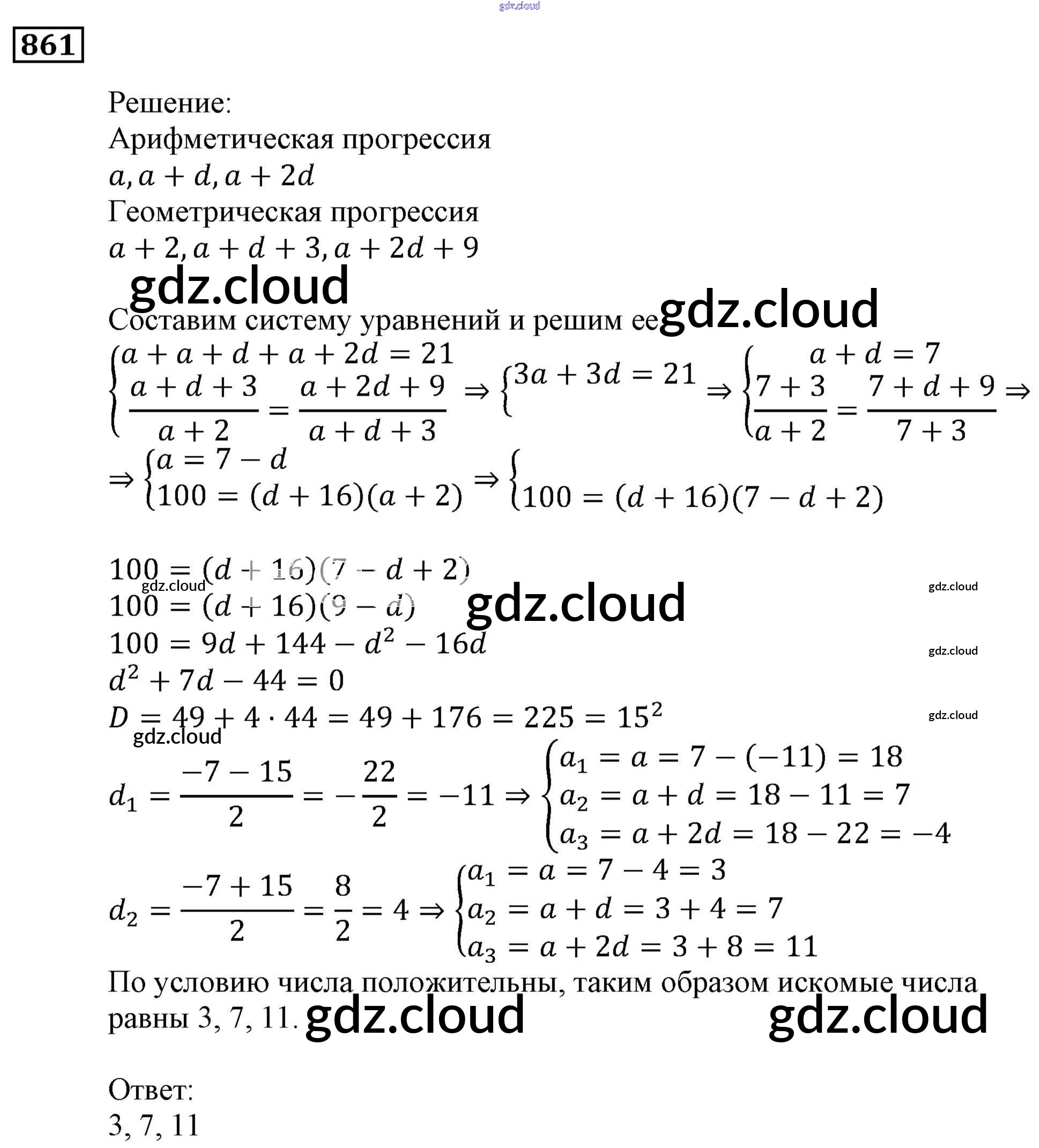 Ответ на задание 861 Учебник Алгебра за 9 (девятый) класс Мерзляк, Полонский, Якир Алгоритм успеха 2016, 2021