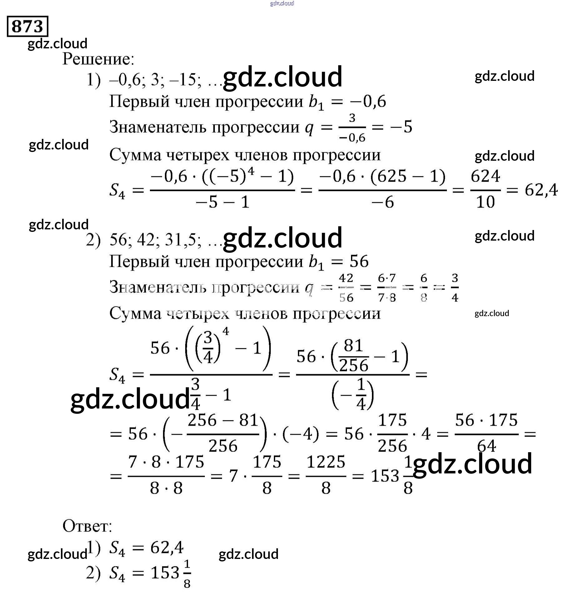 Ответ на задание 873 Учебник Алгебра за 9 (девятый) класс Мерзляк, Полонский, Якир Алгоритм успеха 2016, 2021