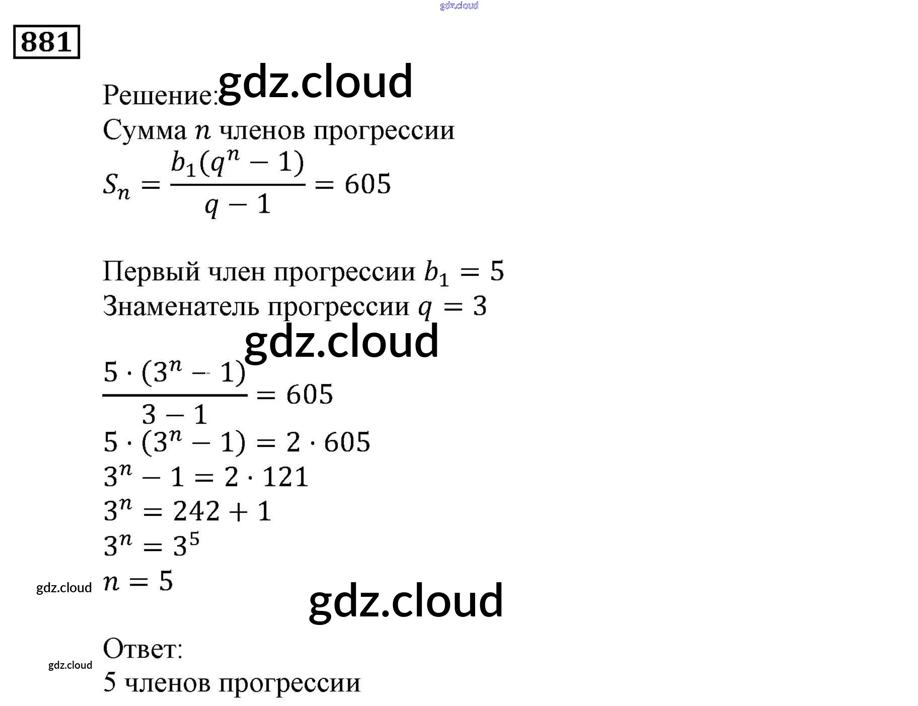 Ответ на задание 881 Учебник Алгебра за 9 (девятый) класс Мерзляк, Полонский, Якир Алгоритм успеха 2016, 2021