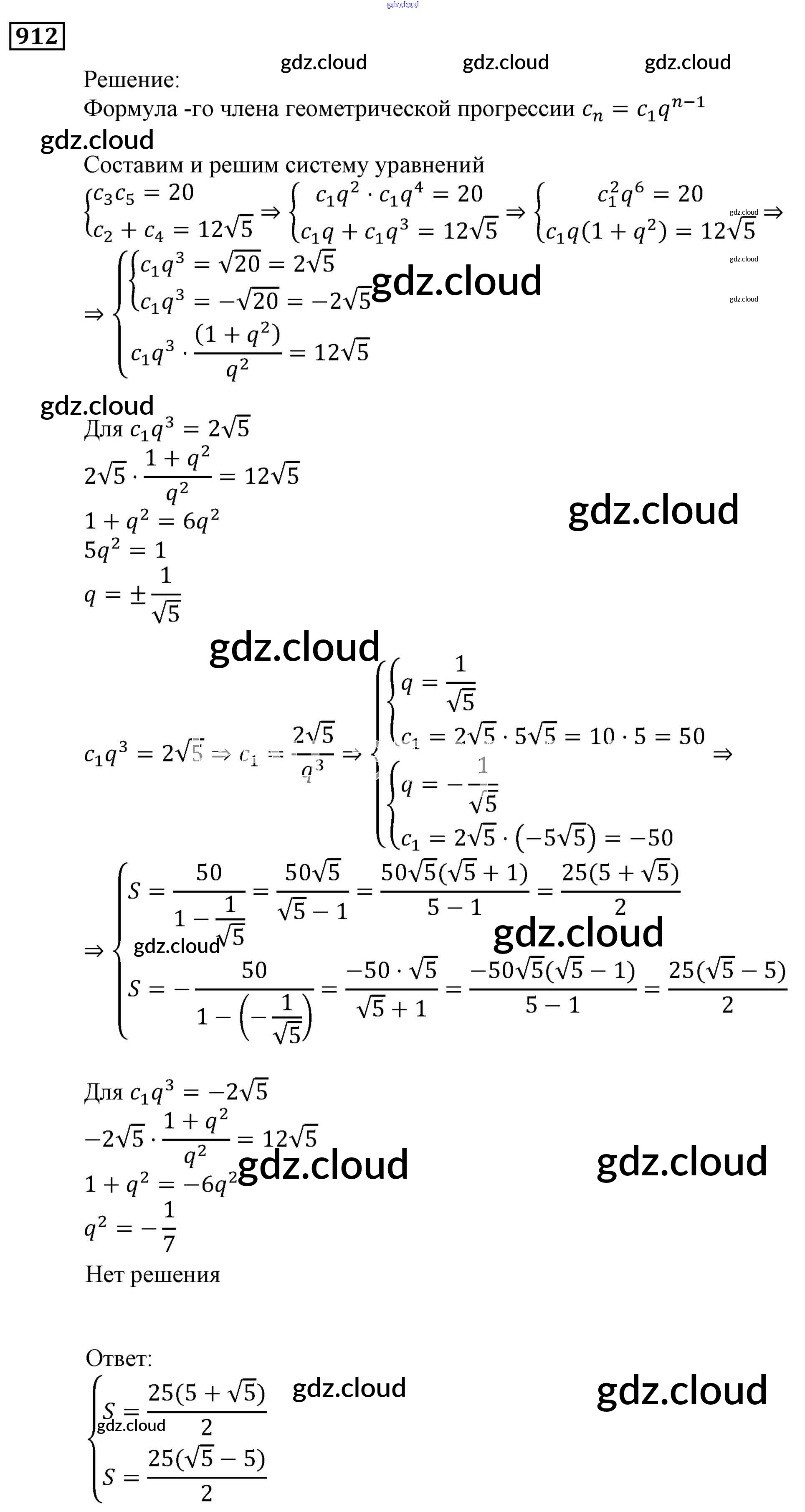 Ответ на задание 912 Учебник Алгебра за 9 (девятый) класс Мерзляк, Полонский, Якир Алгоритм успеха 2016, 2021