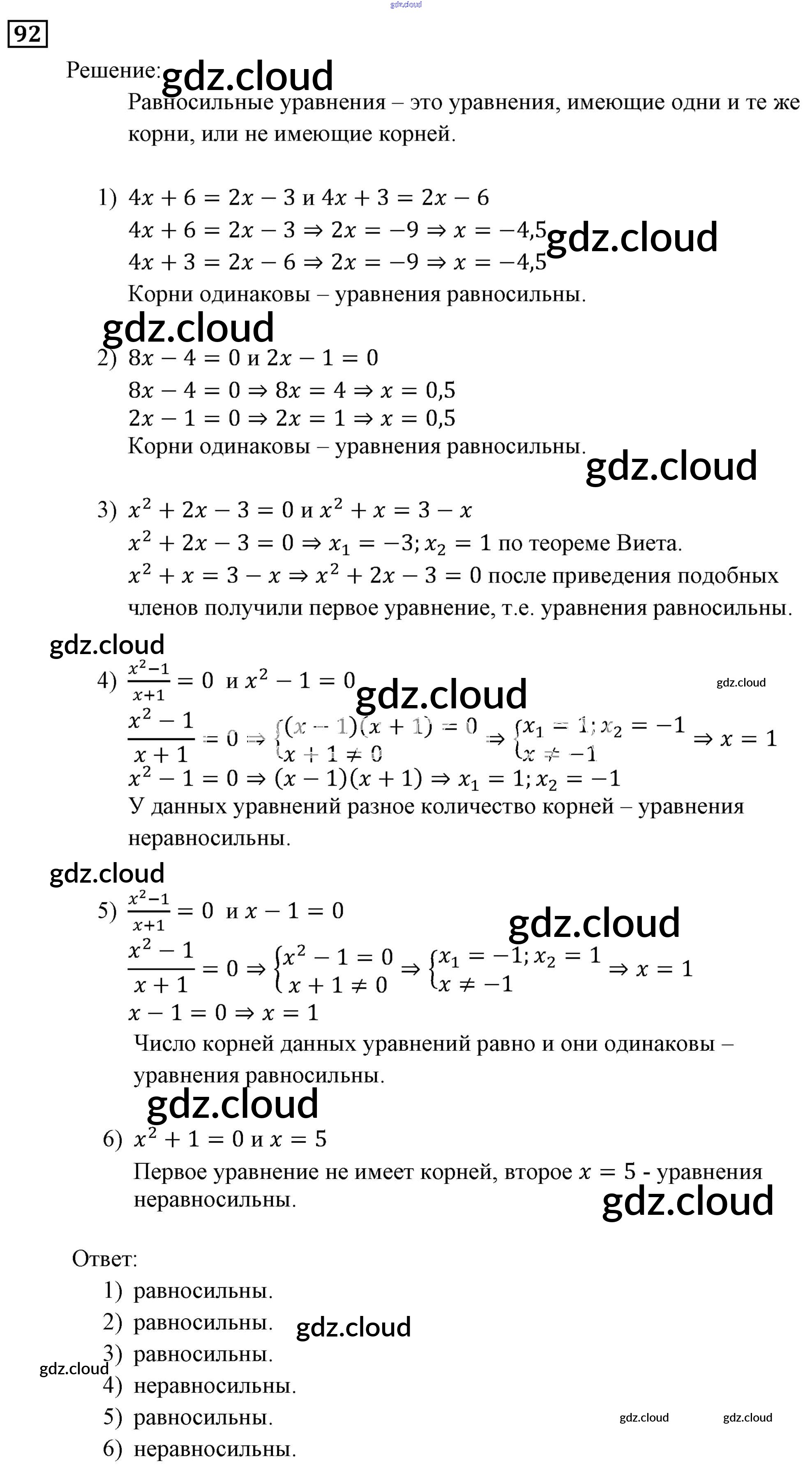 Ответ на задание 92 Учебник Алгебра за 9 (девятый) класс Мерзляк, Полонский, Якир Алгоритм успеха 2016, 2021