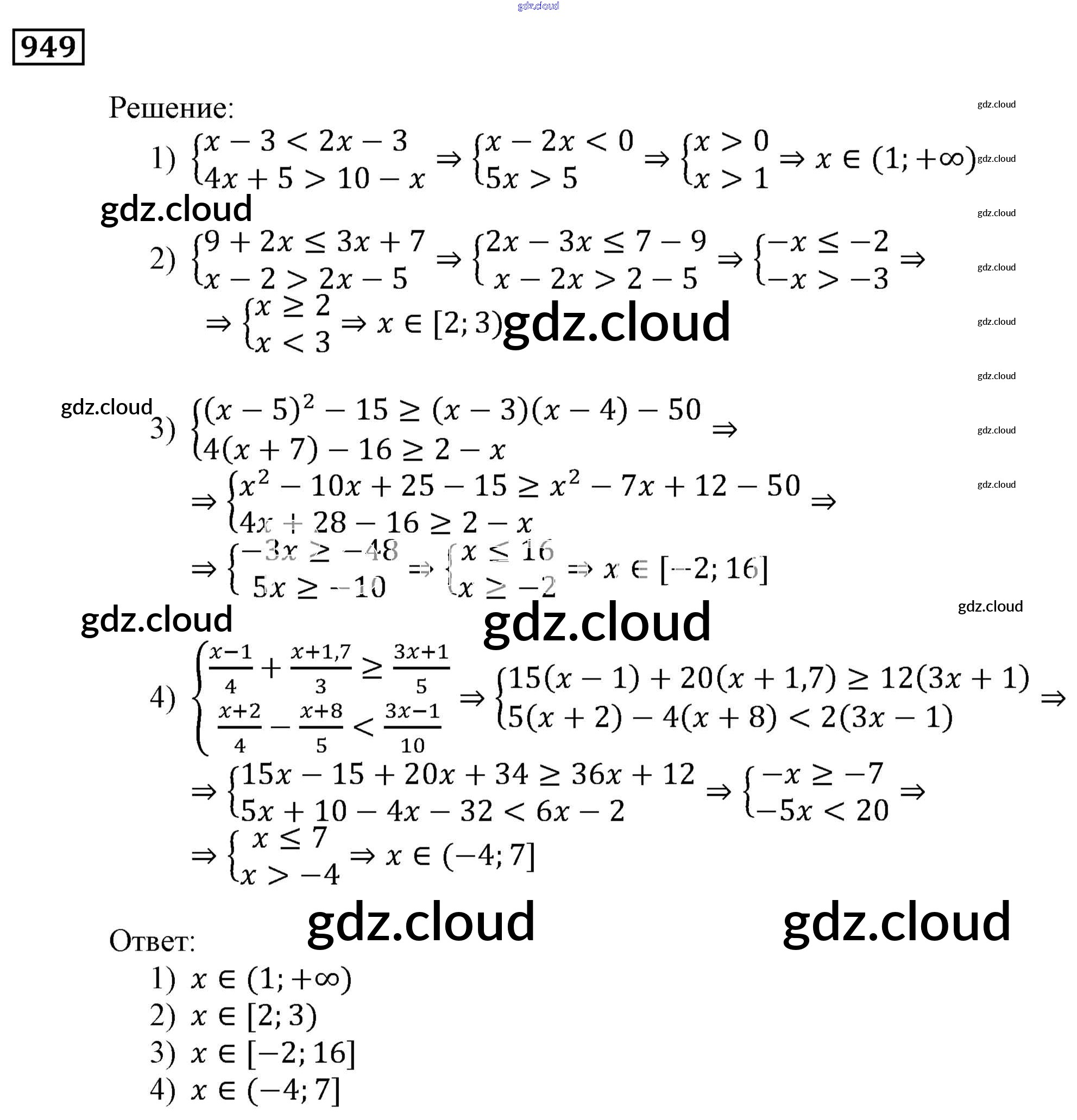 Ответ на задание 949 Учебник Алгебра за 9 (девятый) класс Мерзляк, Полонский, Якир Алгоритм успеха 2016, 2021