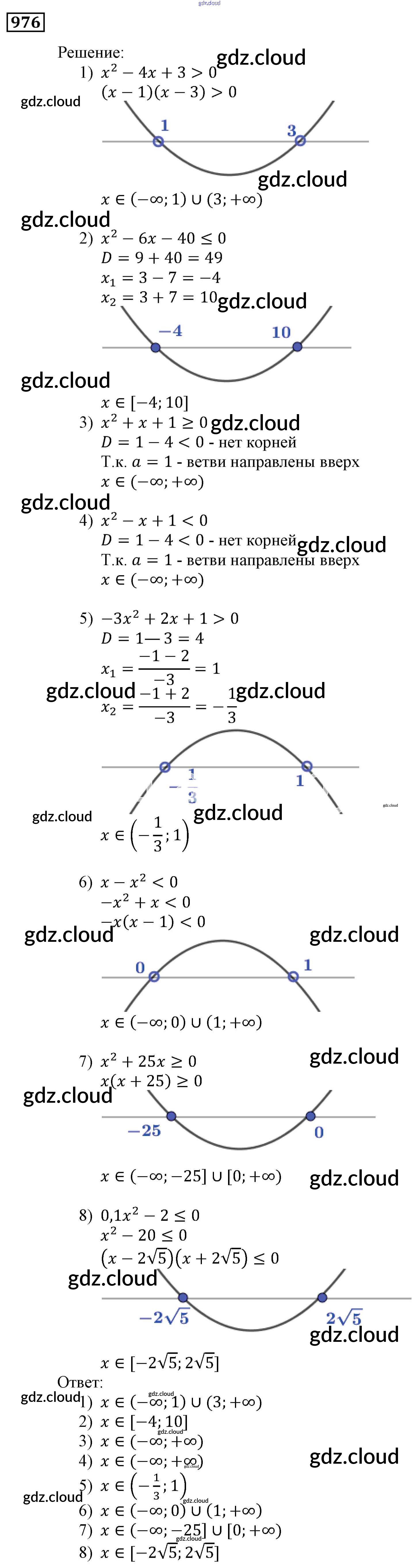 Ответ на задание 976 Учебник Алгебра за 9 (девятый) класс Мерзляк, Полонский, Якир Алгоритм успеха 2016, 2021