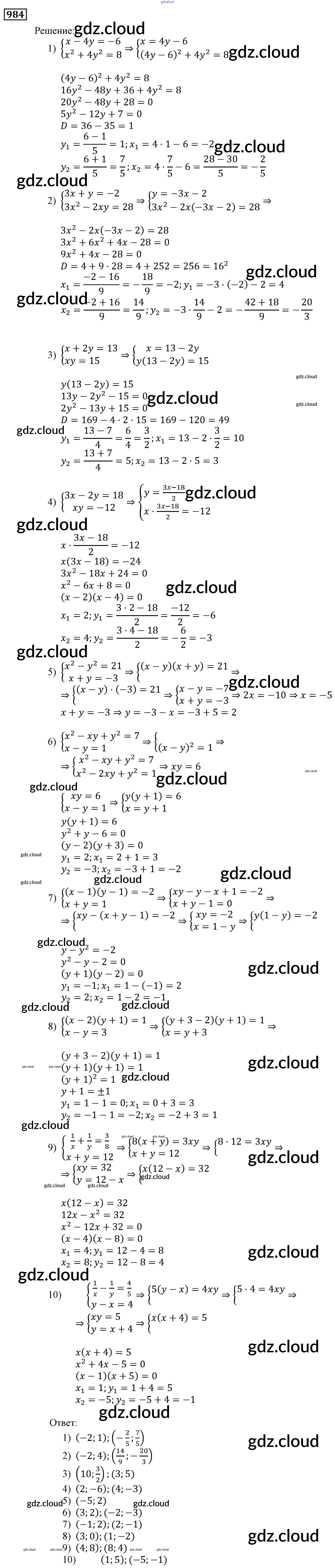 Ответ на задание 984 Учебник Алгебра за 9 (девятый) класс Мерзляк, Полонский, Якир Алгоритм успеха 2016, 2021