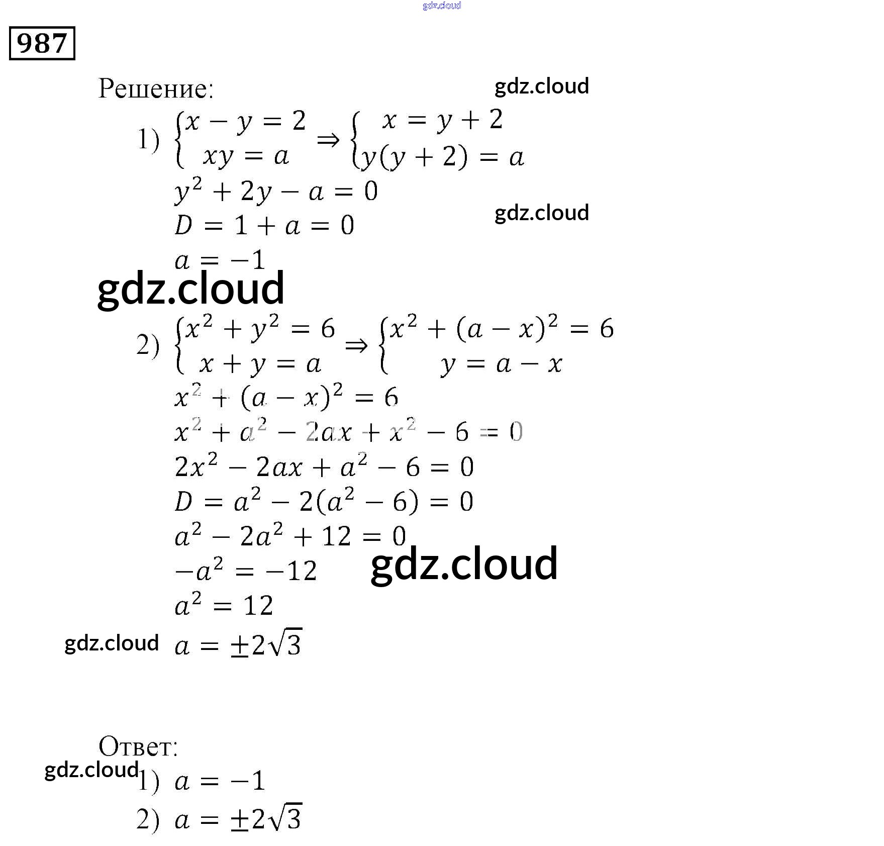 Ответ на задание 987 Учебник Алгебра за 9 (девятый) класс Мерзляк, Полонский, Якир Алгоритм успеха 2016, 2021