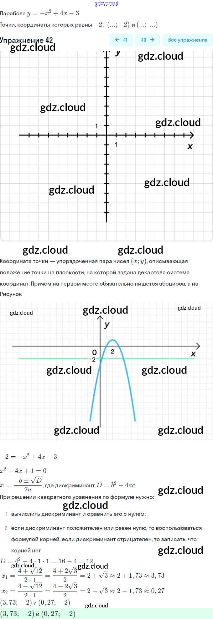 Ответ на задание 42 Рабочая тетрадь Алгебра за 9 (девятый) класс Минаева, Рослова 2017 Часть 1, 2