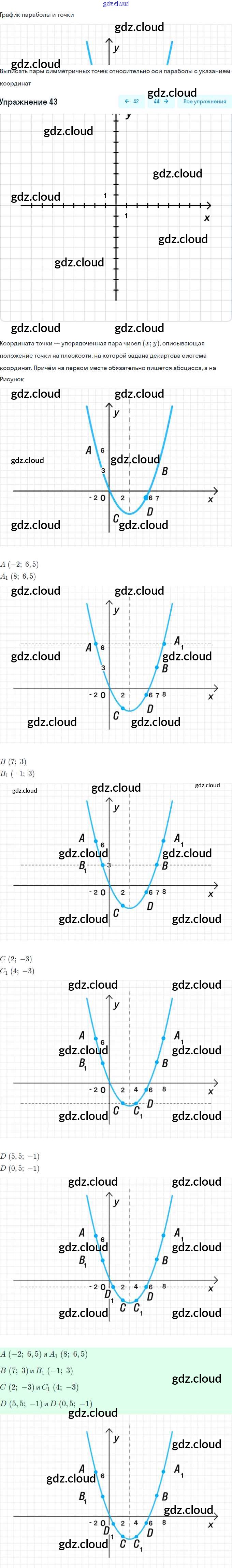 Ответ на задание 43 Рабочая тетрадь Алгебра за 9 (девятый) класс Минаева, Рослова 2017 Часть 1, 2