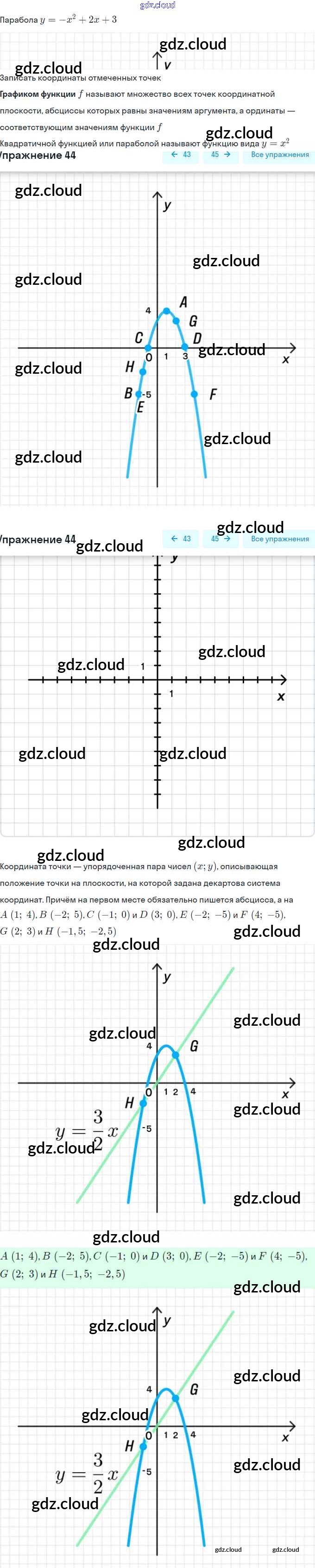 Ответ на задание 44 Рабочая тетрадь Алгебра за 9 (девятый) класс Минаева, Рослова 2017 Часть 1, 2