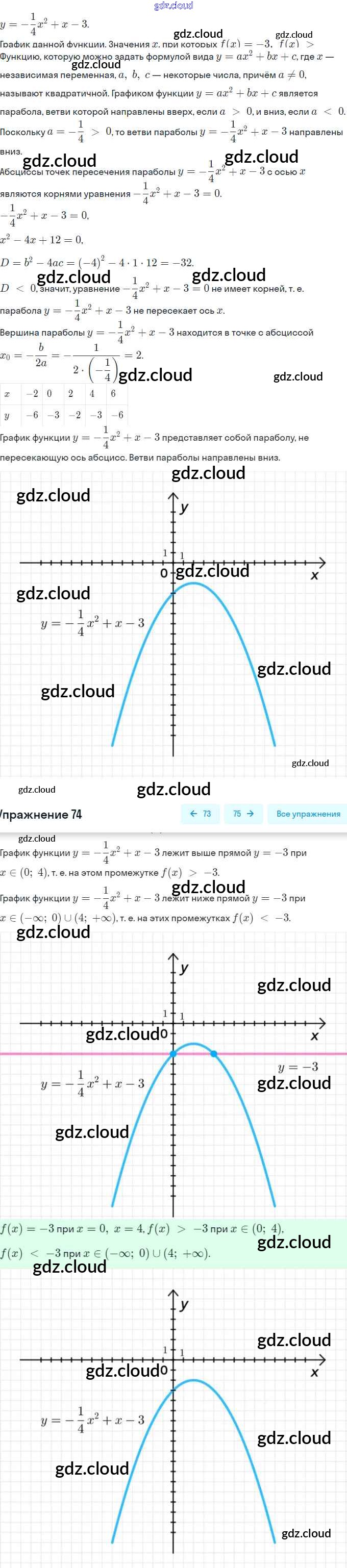 Ответ на задание 74 Рабочая тетрадь Алгебра за 9 (девятый) класс Минаева, Рослова 2017 Часть 1, 2
