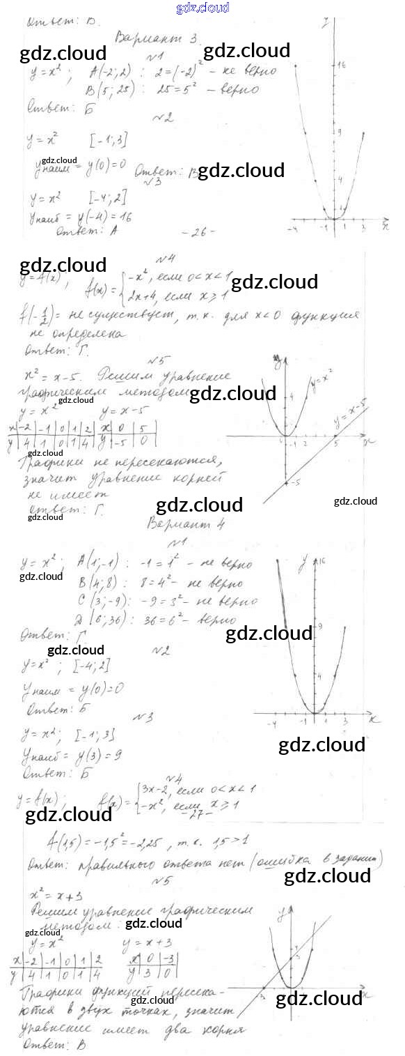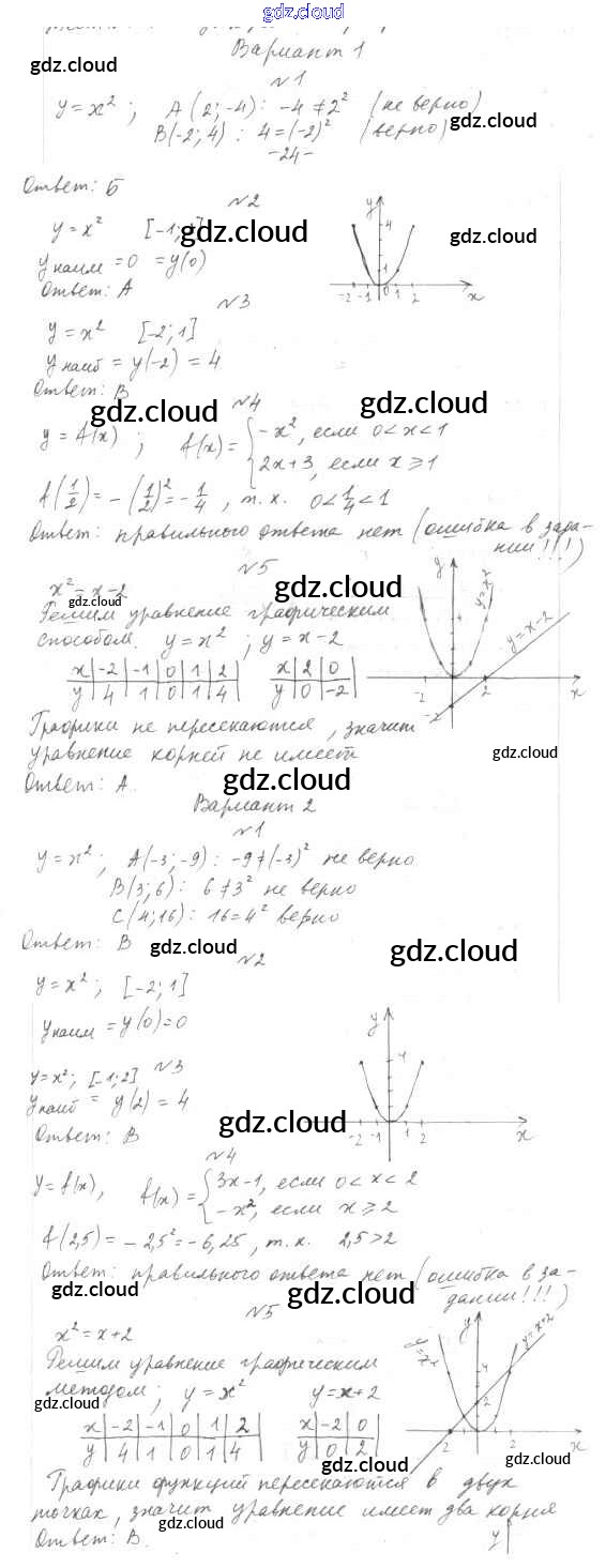 Ответы к 7 класс по Алгебре 7, 8, 9 класс Тесты Мордкович Базовый уровень Мнемозина