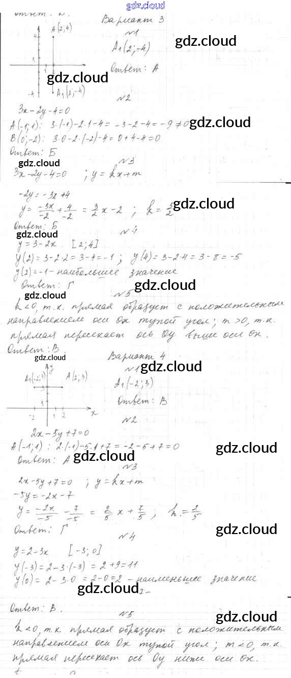 Ответы к 7 класс по Алгебре 7, 8, 9 класс Тесты Мордкович Базовый уровень Мнемозина