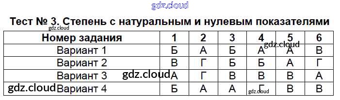 Ответ на задание Тест 3 Тесты Алгебра за 7, 8, 9 (седьмой, восьмой, девятый) класс Мордкович, Тульчинкая Базовый уровень 2013