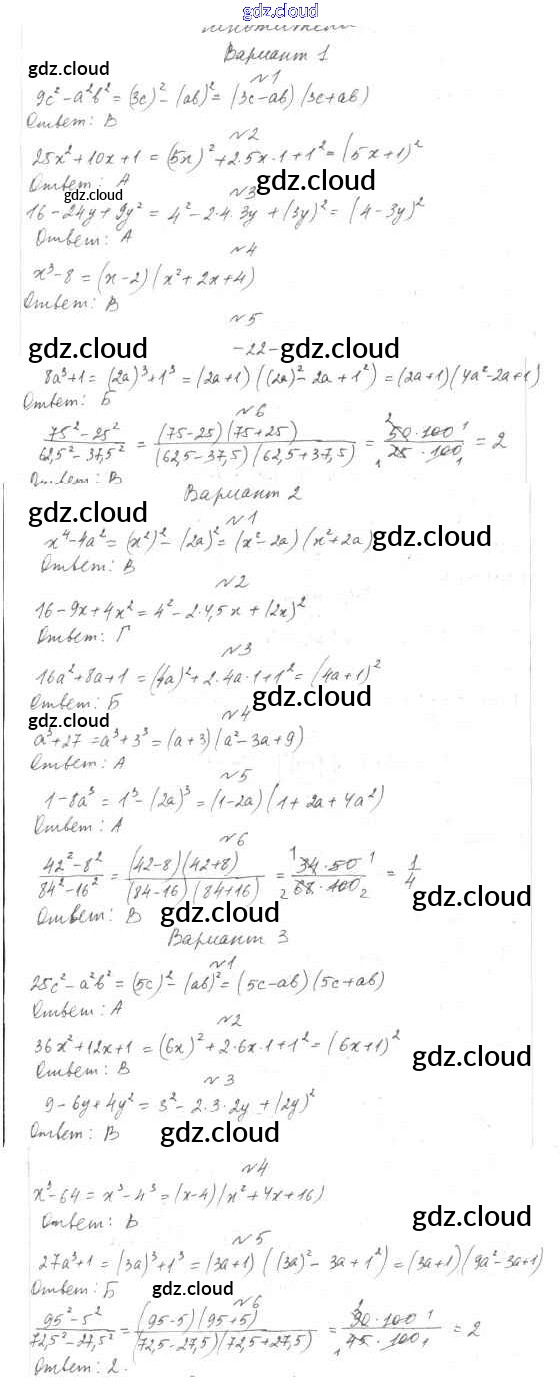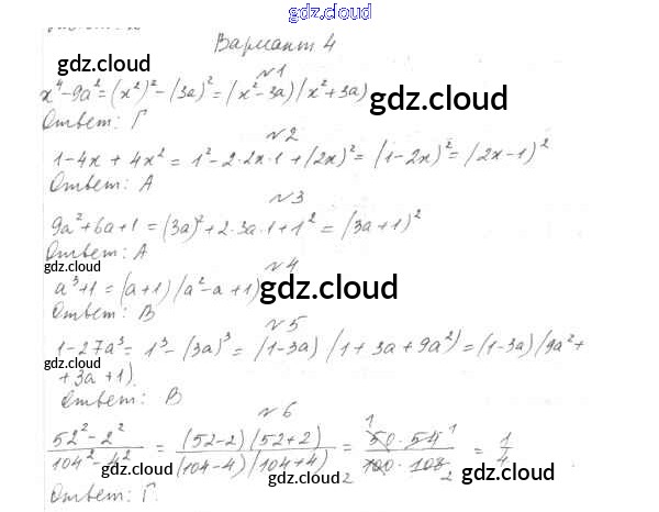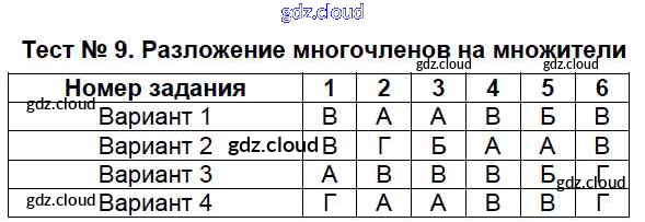 Ответы к 7 класс по Алгебре 7, 8, 9 класс Тесты Мордкович Базовый уровень Мнемозина