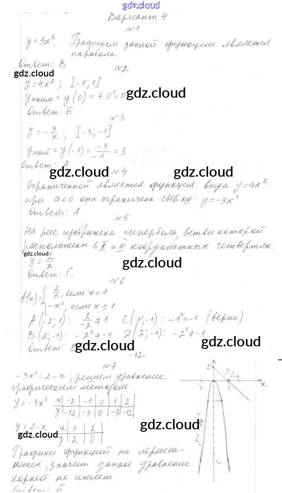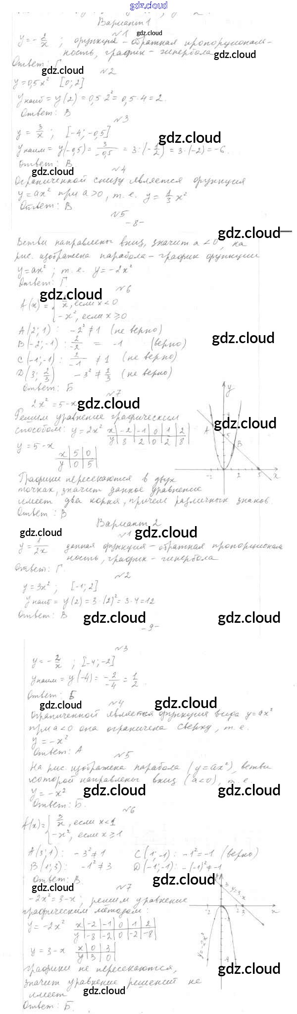 Ответы к 8 класс по Алгебре 7, 8, 9 класс Тесты Мордкович Базовый уровень Мнемозина