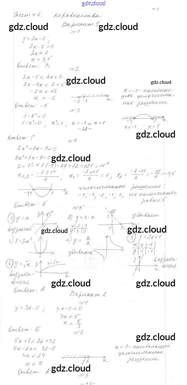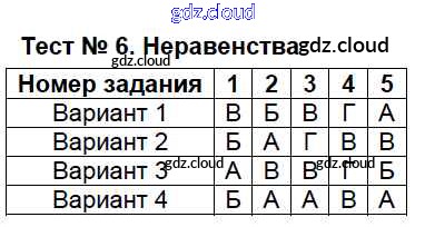 Ответ на задание Тест 6 Тесты Алгебра за 7, 8, 9 (седьмой, восьмой, девятый) класс Мордкович, Тульчинкая Базовый уровень 2013