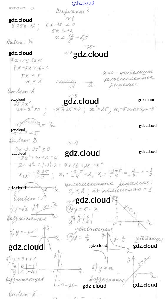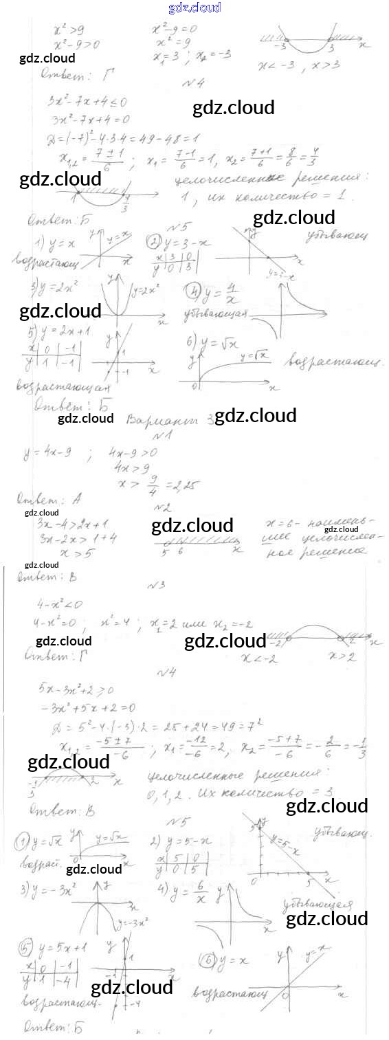 Ответы к 8 класс по Алгебре 7, 8, 9 класс Тесты Мордкович Базовый уровень Мнемозина
